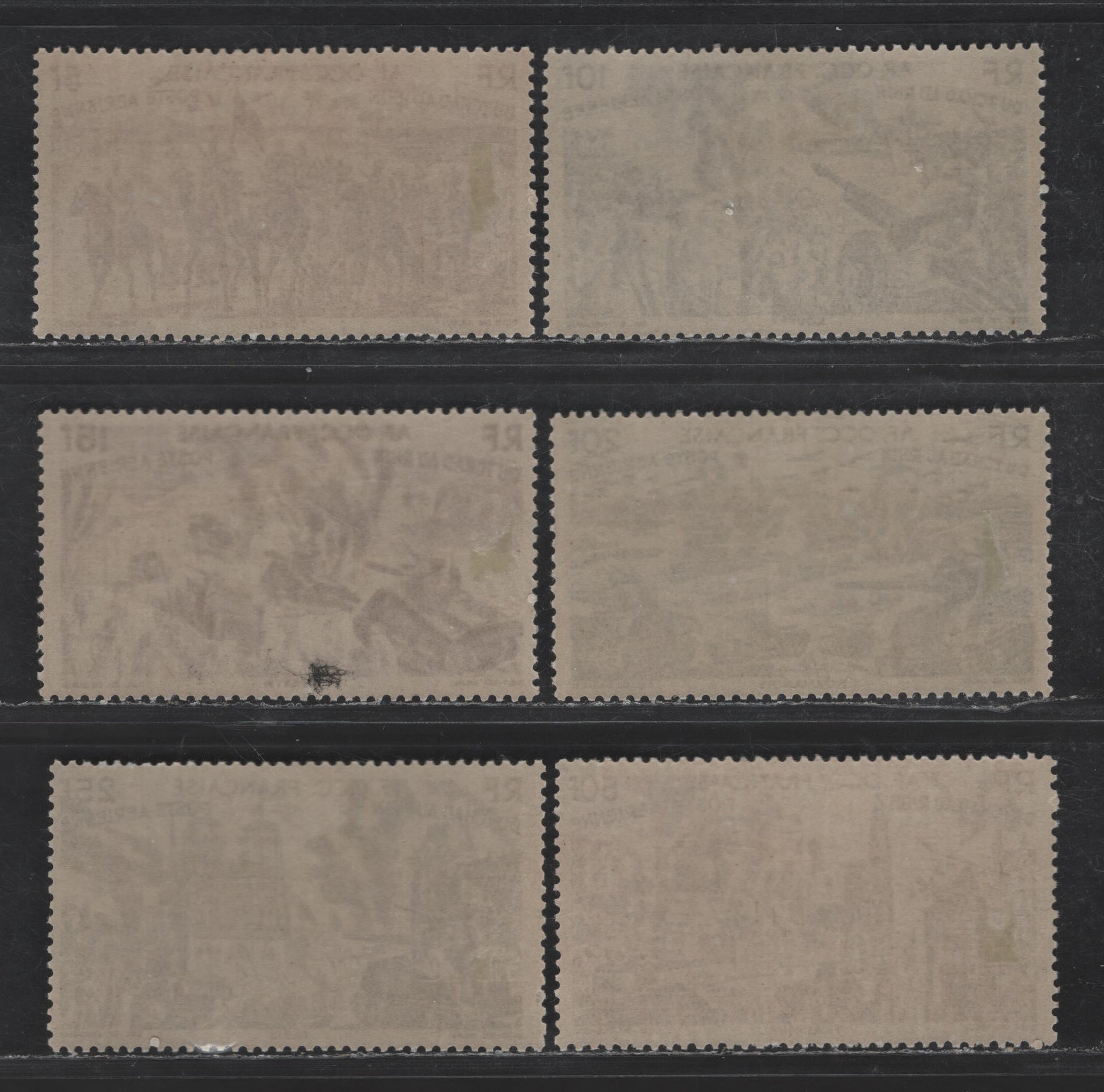 6 VFOG singles of the 5fr - 50fr brown carmine - brown City from the 1946 From Chad To Rhine Airmail Issue.