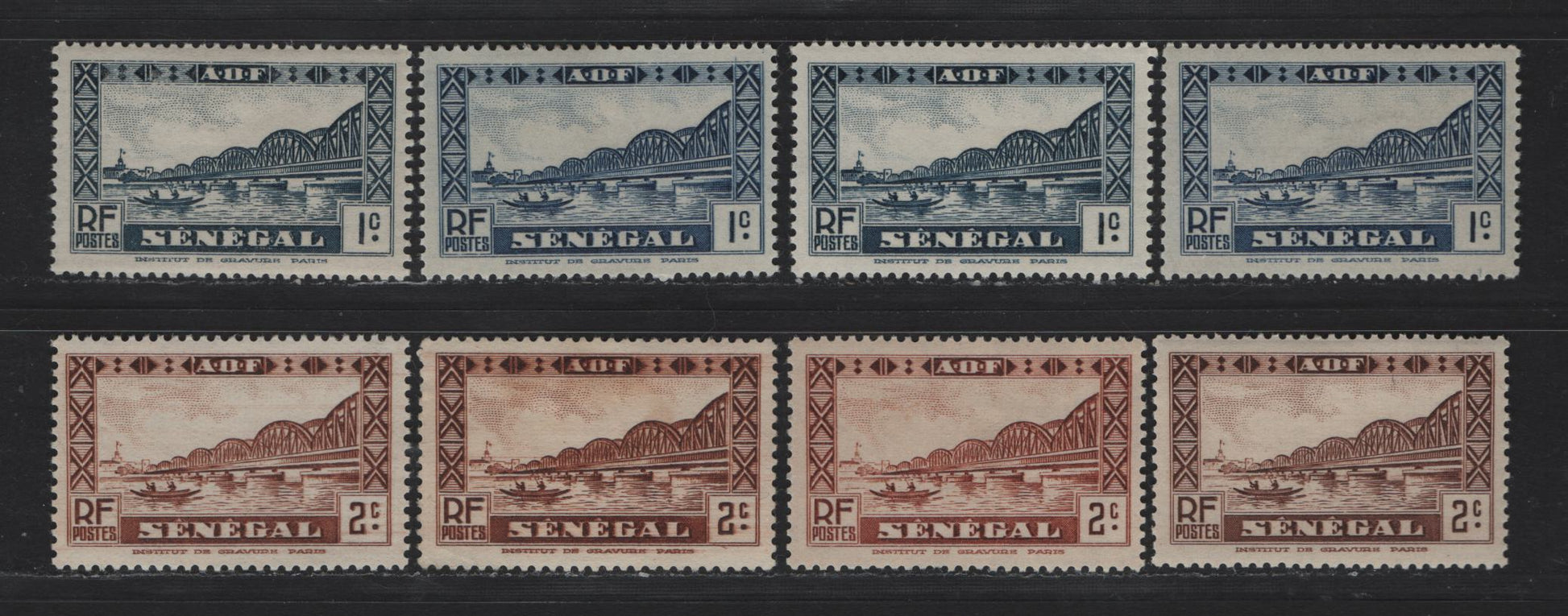 Lot 114 Senegal SC#142-153 45c - 1c Dark Blue Green - Violet Blue Faidherbe Bridge - Diourbel Mosque, 1935-1940 Pictorial Definitive Issue, 30 VFOG Singles, Shade Varieties