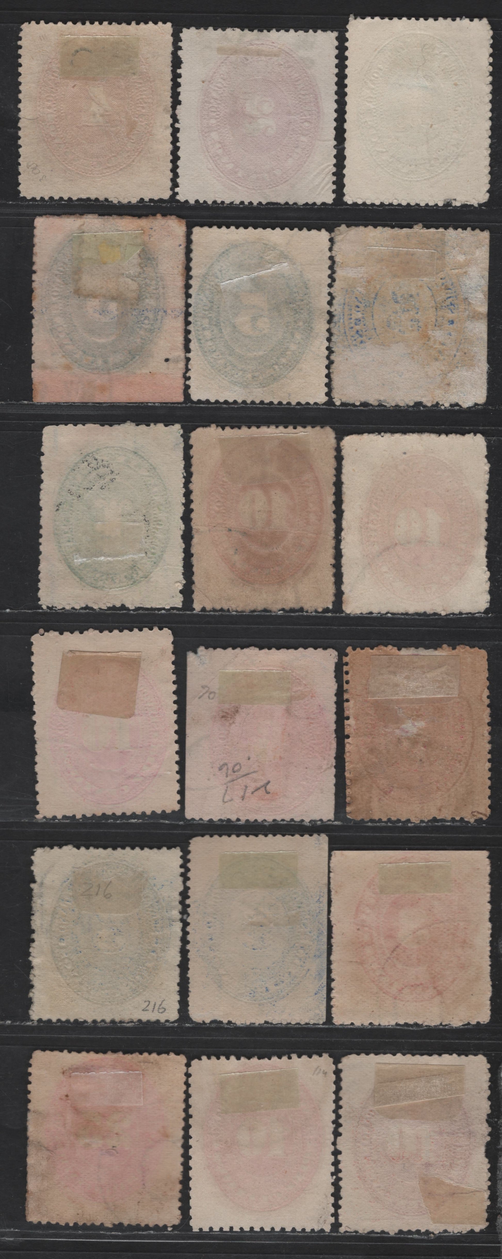 18 fine/very fine used singles of the 1c -25c green - orange Numerals from the 1886-1895 Numeral Issues, unwatermarked & watermarked, perf 11-12, extra shades.