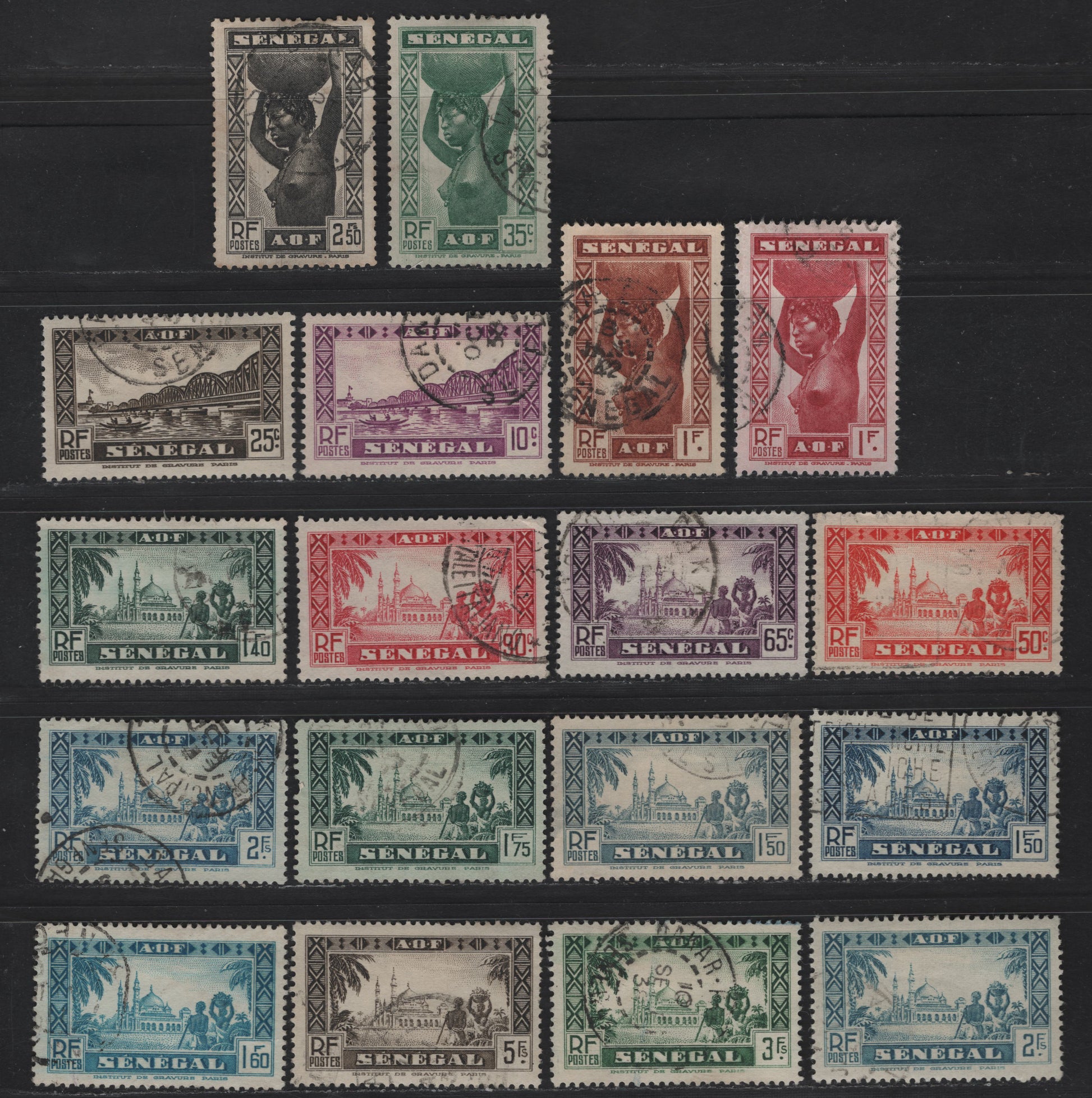 Lot 116 Senegal SC#147/187 10c - 2.50fr Violet - Black Faidherbe Bridge - Diourbel Mosque, 1935-1940 Pictorial Definitive Issues, 18 Fine/Very Fine Used Singles