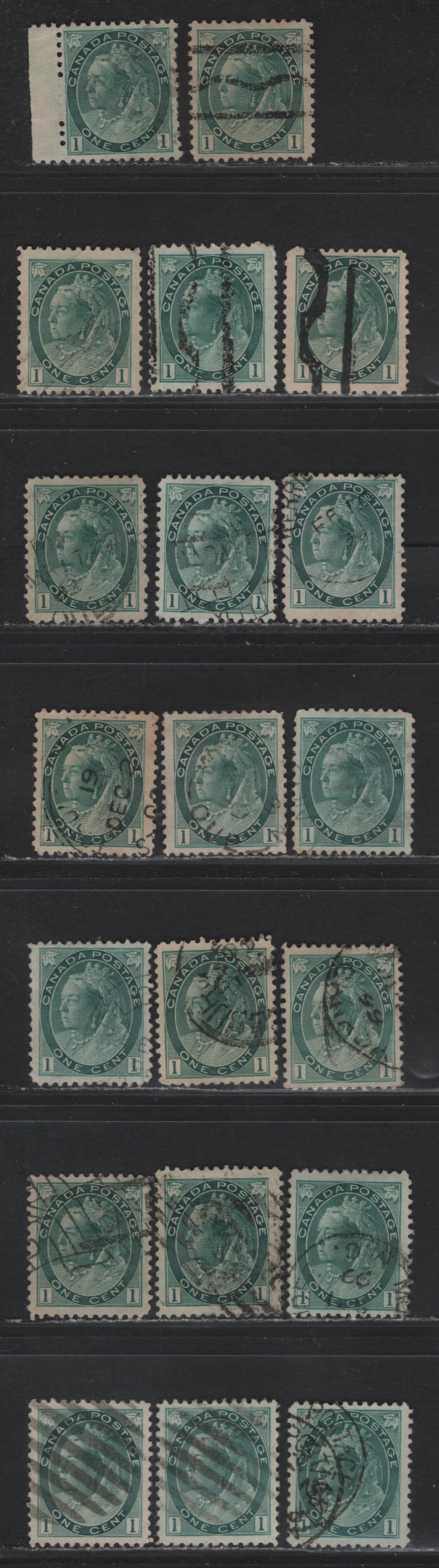 Lot 122 (C) Canada #75ii 1c Blue Green Queen Victoria, 1898-1902 Numeral Issue, 20 Very Fine Used Singles, Various Papers & Perfs, Includes 3 Precancels
