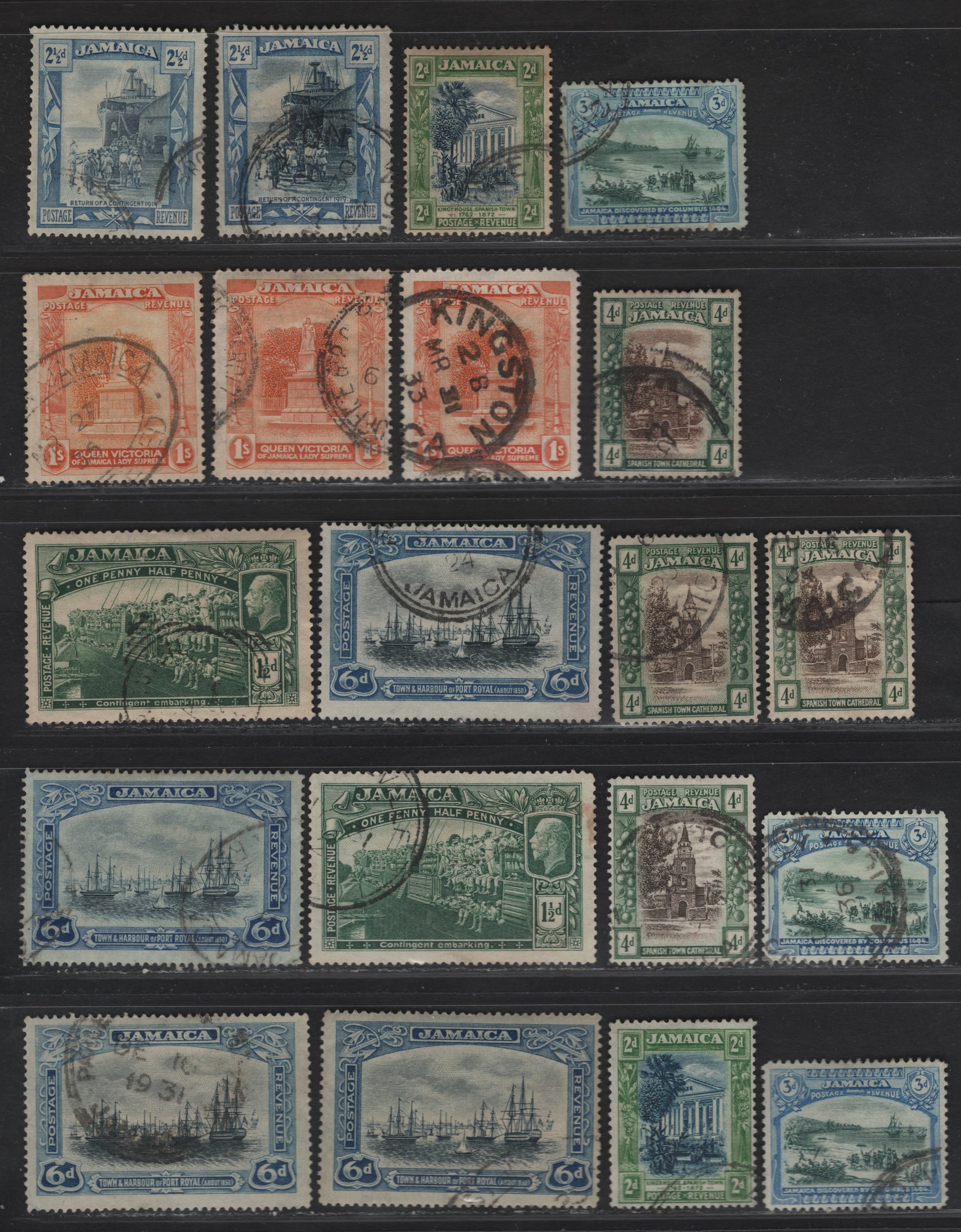 Lot 122 Jamaica SG#96-97a, 98-a, 99-a, 100-a, 101-a, 102-a 1.5d - 1/- Green - Orange & Red Orange War Contingent Embarking - Statue of Queen Victoria, 1921-1939 Pictorial Issue, 20 Fine/Very Fine Used Singles