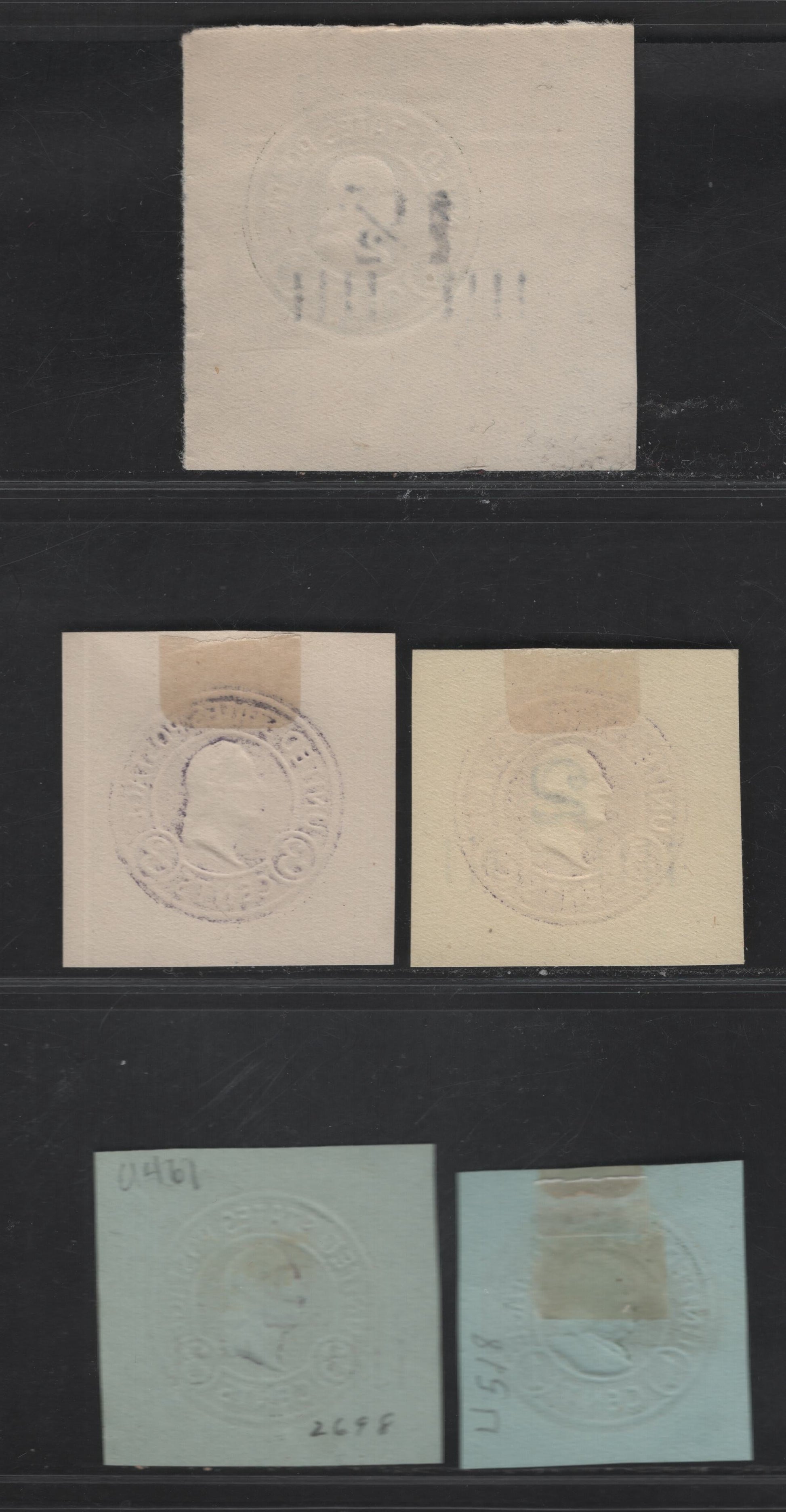 The lot includes; 2c on 3c dark violet die 6 on white, die 1 on amber, die on 1 blue, 1.5c on 1c olive green on white die 1, 1.5c on 1c bronze green on blue die 4.