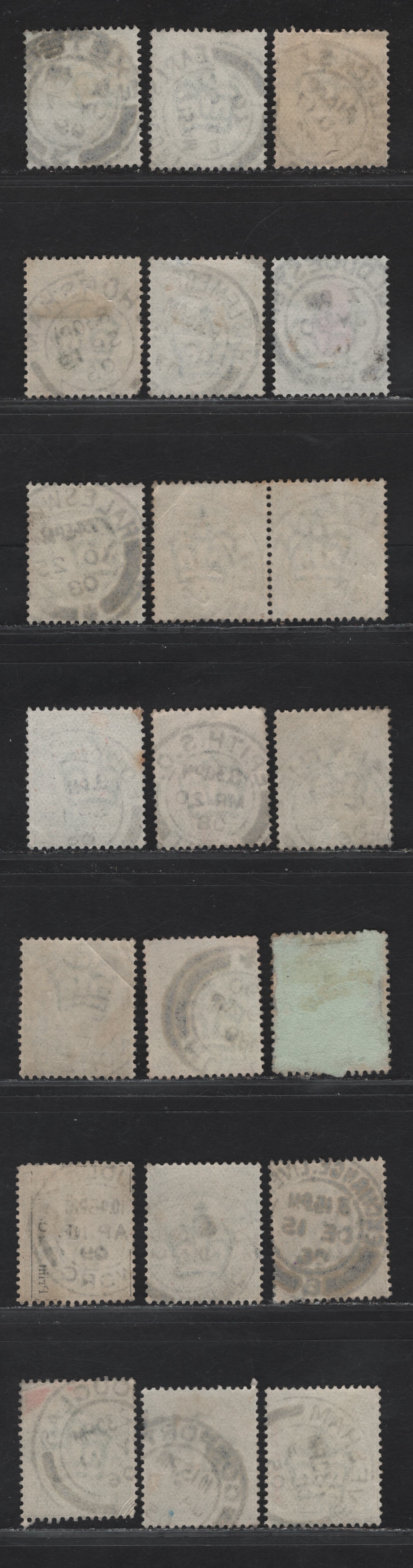 Gibbons doesn't list these varieties, so we estimate them at $20. The stamps offered here grade between 70 and 80 as follows:
