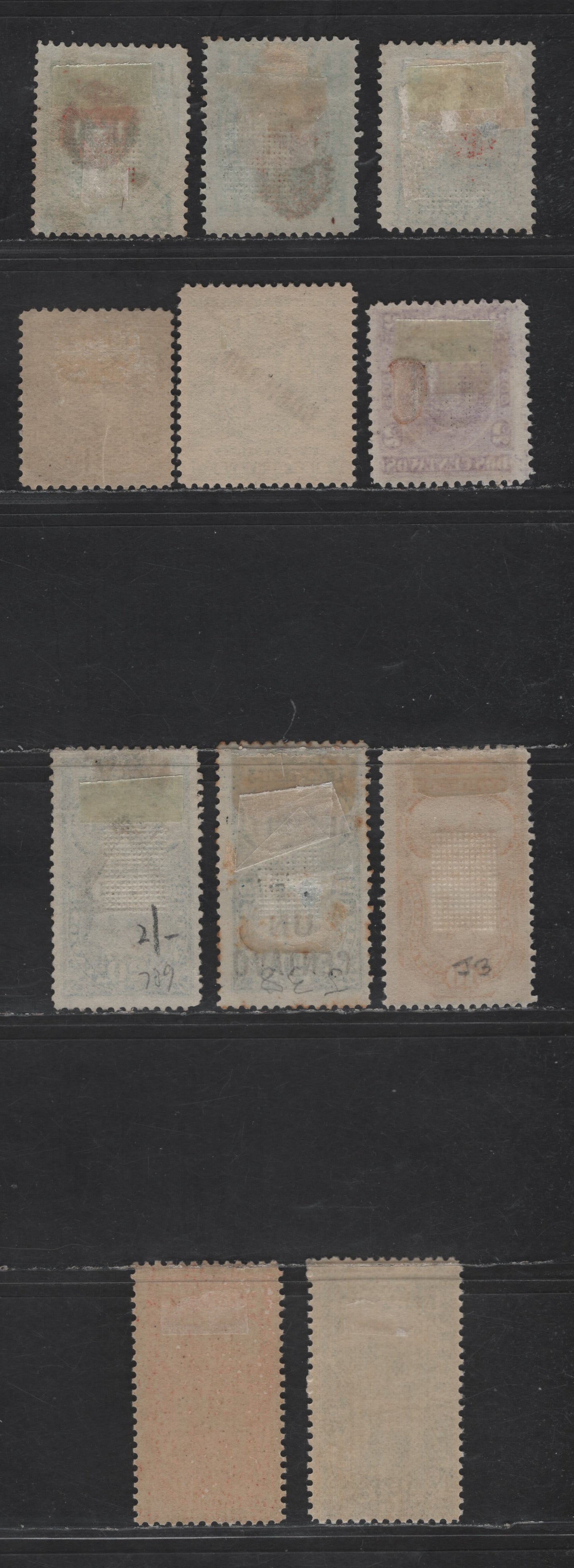 11 F/VFOG & unused singles of the 10c - 5c orange - ultramarine Numerals - Pictorials from the 1874-1882 Postage Dues With Grill & Chilean Occupation Overprinted Issues, most with gum.