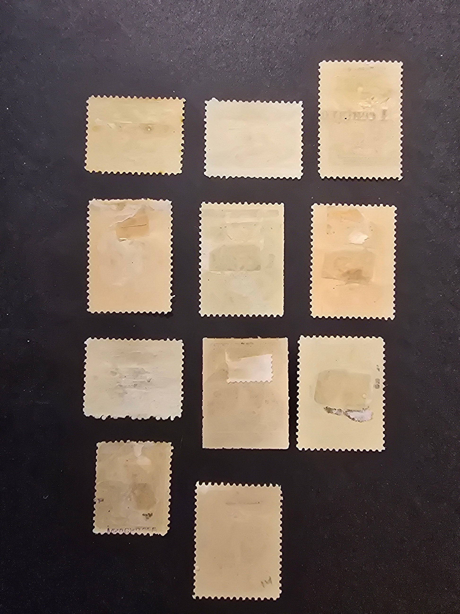 Lot 139 El Salvador SC#1a, 3a, 11, 13, 18, 20-25 1/2r - 1c on 3c Blue - Brown Volcano at Sain Miguel - Overprints, 1873-1889 Volcano - Surcharge Issues, 11 FOG Singles