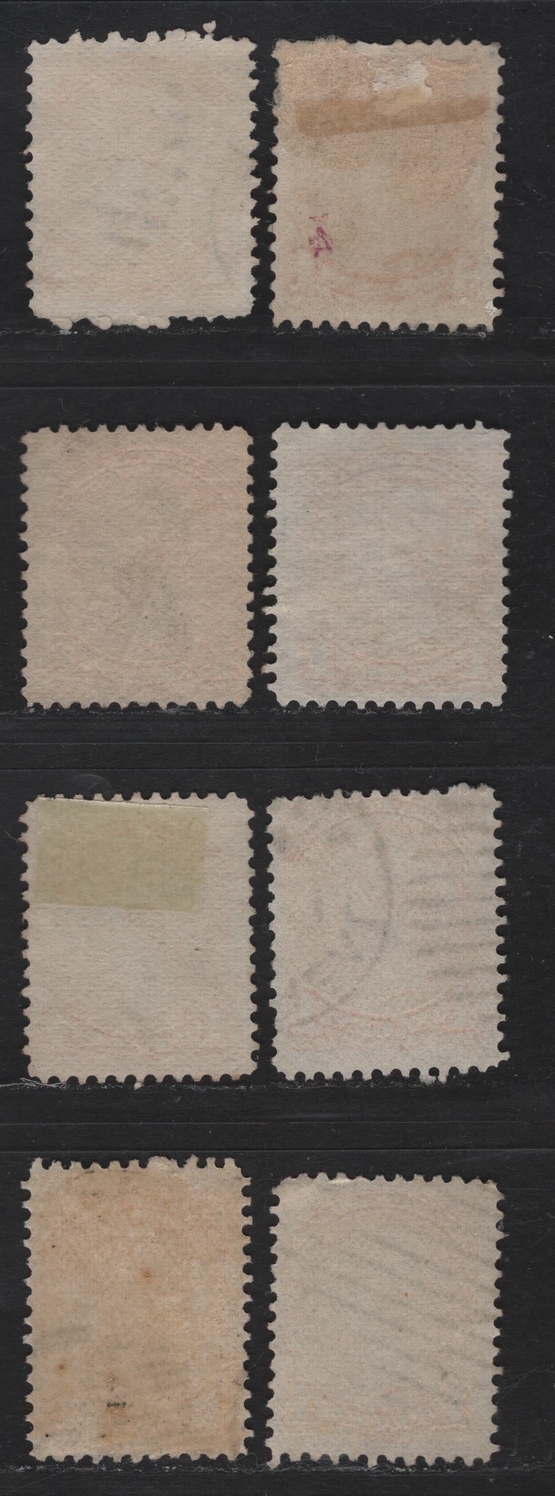 8 fine used singles of the 1c yellow Queen Victoria from the 1870-1893 Small Queen Issue, mid Montreal printings, paper types MM-B, MM-C & MM-F, perf 12, plate dot in ll.
