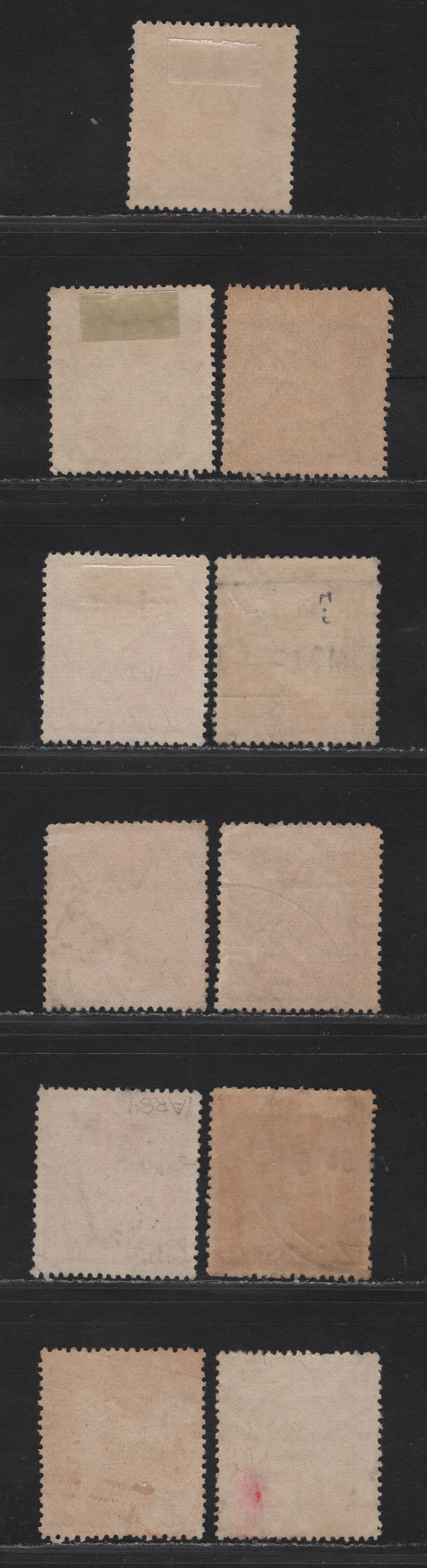 Lot 140 (C) New Zealand SG#F192b, F193w, F194w, F196w, F201w, F203w 1/3d - £1 Yellow & Dark Blue - Pink Arms, 1940-1958 Postal Fiscal Issue, 6 Fine/Very Fine Used Singles, Different Shade Variations, All With Inverted Wmk.