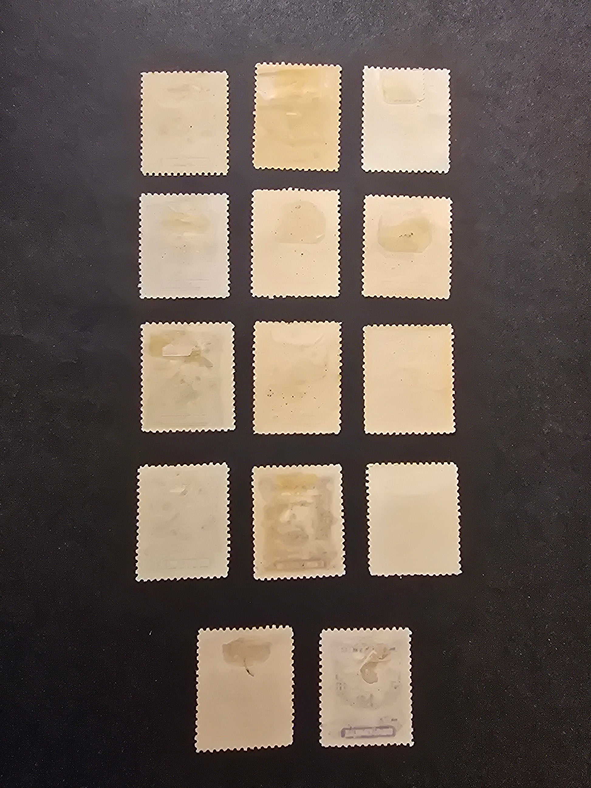 14 F/VFOG singles of the 2c - 1p green - brown Arms from the 1891 Arms Seebeck Issue, additional shades.