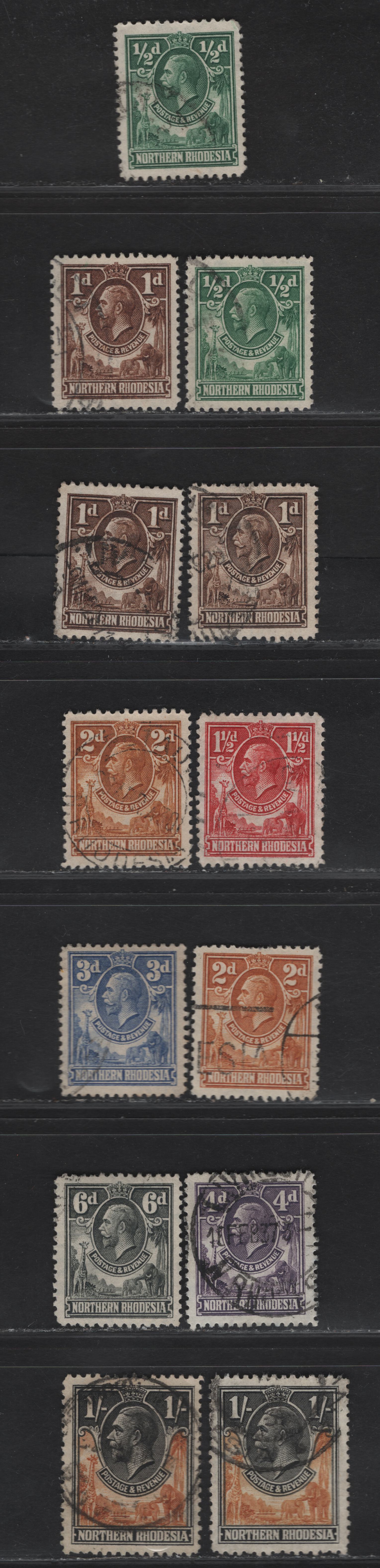 Lot 144 Northern Rhodesia SG#1-7, 10 1/2d - 1/- Green - Black & Yellow Orange King George V, 1925-1929 Pictorial Issue, 6 Very Fine Used Singles, Unlisted Shade Variations
