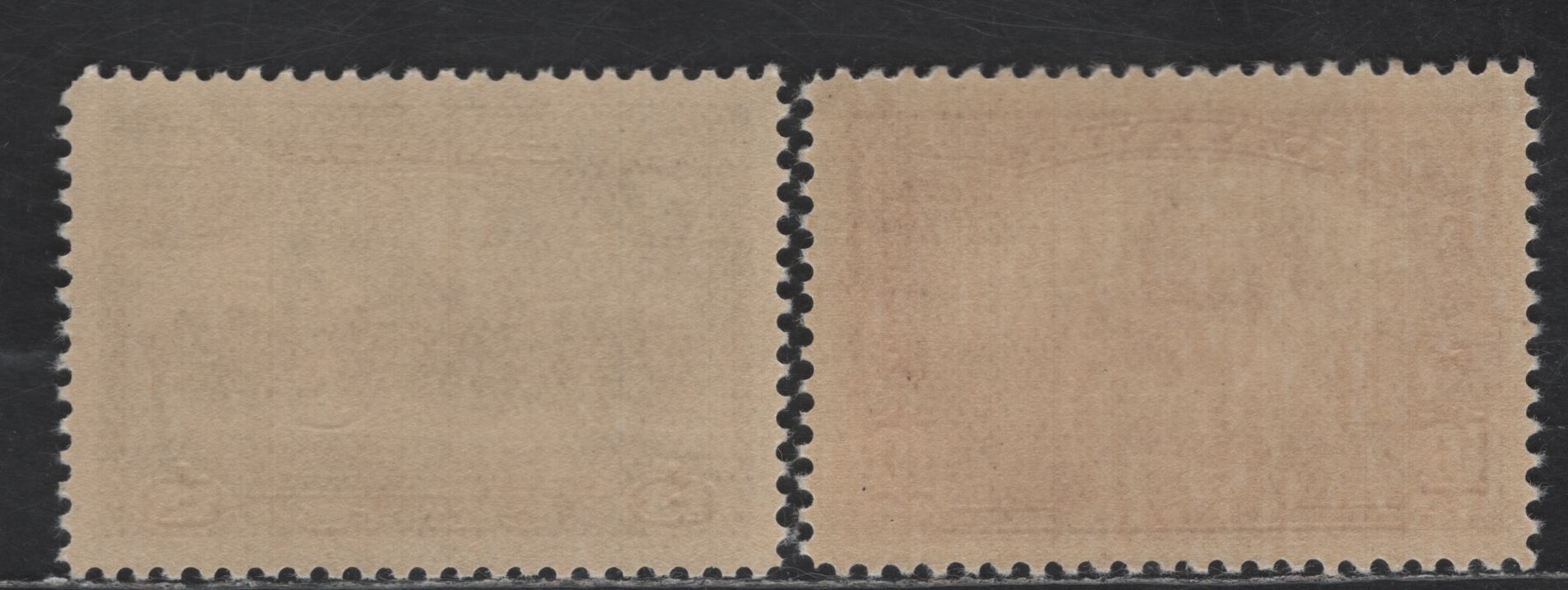 The 13c has yellowish creamy semi-glossy gum on soft vertical wove paper with clear mesh and the 10c has streaky deep yellowish cream gum on crisp vertical wove paper with visible mesh.