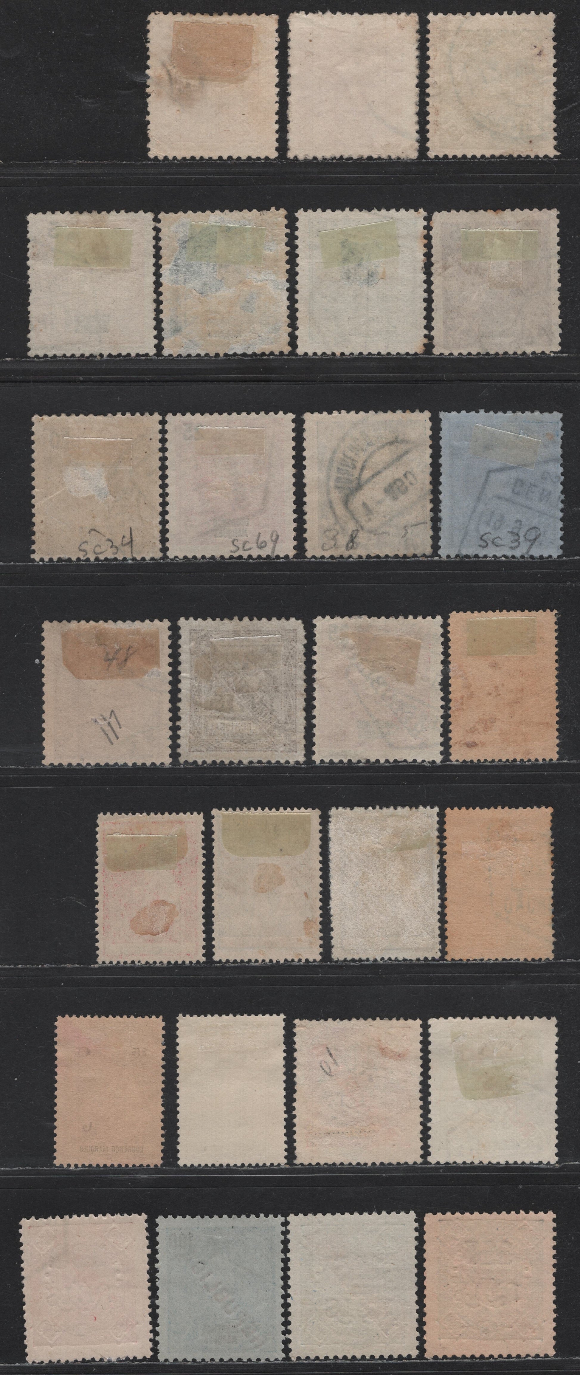 Scott values these at $18.25, so we estimate them at $12. The stamps offered here grade between 66 and 80 as follows: