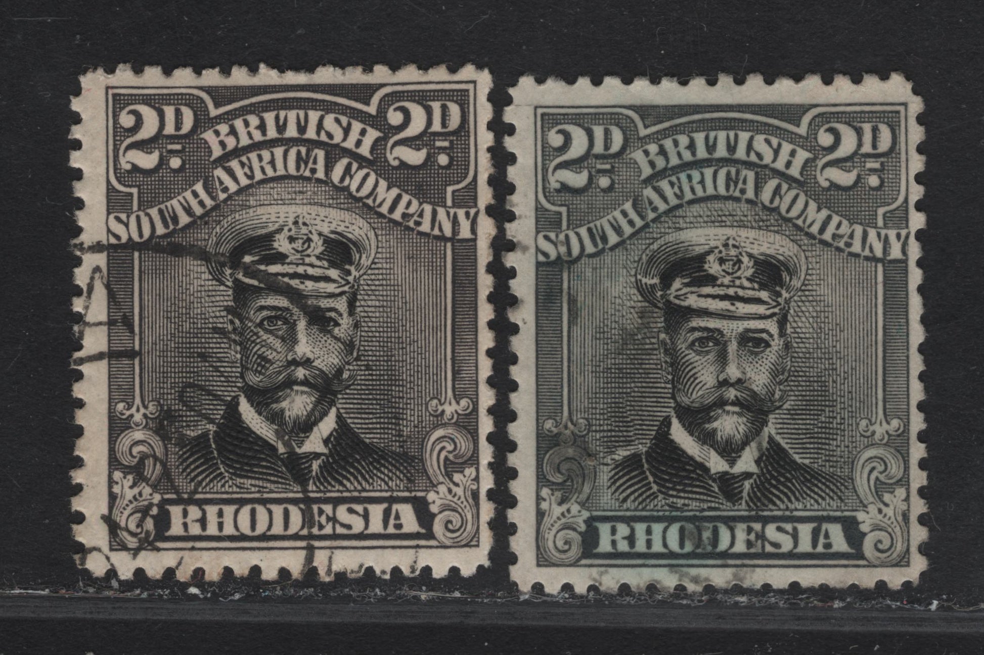 Lot 154 (C) Rhodesia SG#256-257 2d Black & Gray Black - Black & Gray King George V, 1919 Admiral Issue, 2 Fine/Very Fine Used Singles, Die 3, Perf 14
