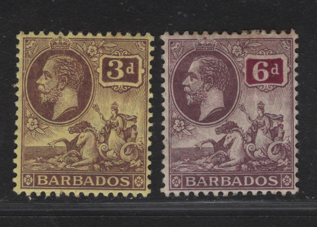 Lot 15A Barbados #175, 177 3d Purple On Yellow & 6d Dull Purple & Purple, 1912-1916 King George V Badge Of Colony Keyplates Issue, 2 F & VF OG Singles