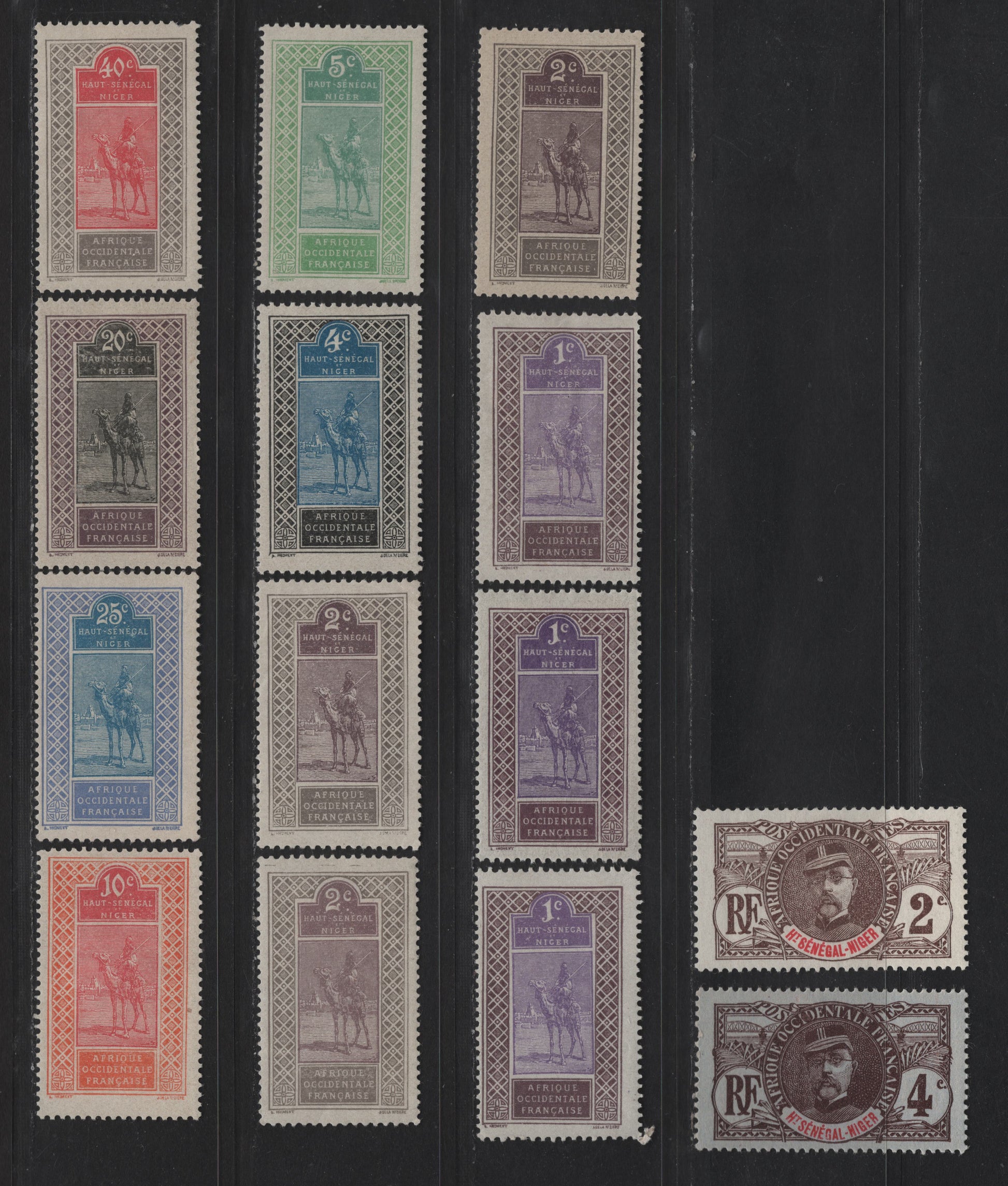 Lot 161 Upper Senegal & Niger SC#2-3, 18-21, 28 2c - 40c Brown & Red - Gray & Carmine Rose Gen. Louis Faidherbe - Camel With Rider, 1906-1917 Definitive Issues, 14 F/VFOG Singles, With Additional Shades