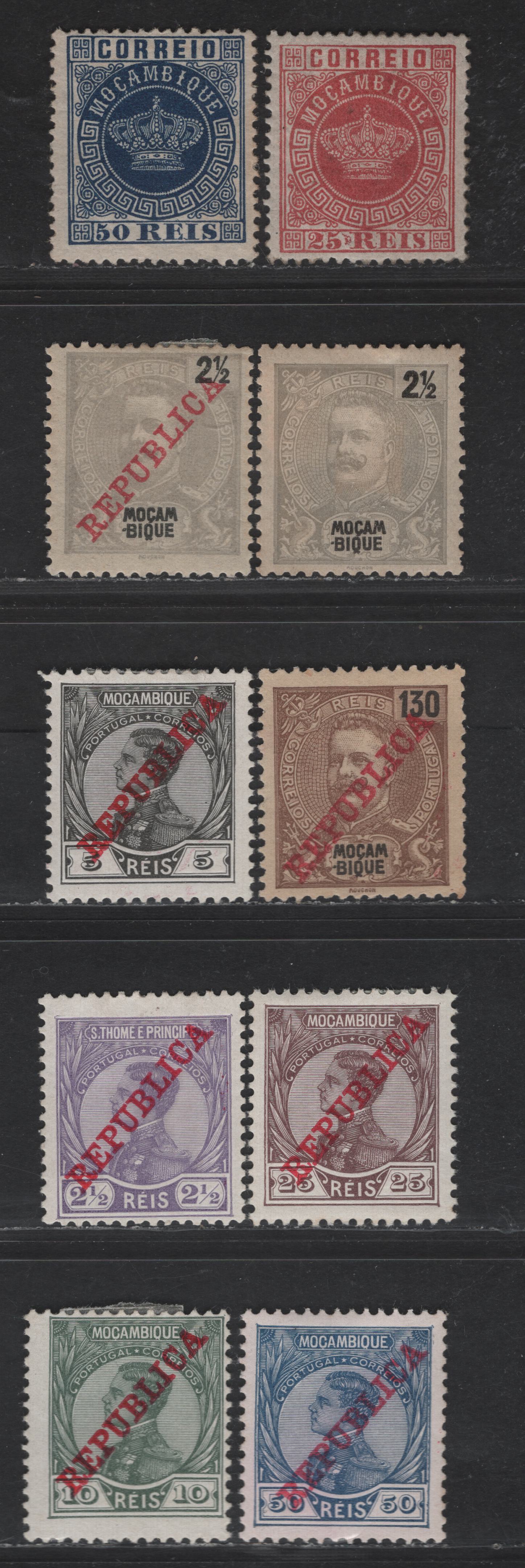 Lot 162 Mozambique SC#6, 11, 49, 99, 109, 114-116, 118-119 Portuguese Crown - King Manuel II, 1877-1885 Portuguese Crown - King Manuel II Issues, 10 F/VFOG & Unused Singles
