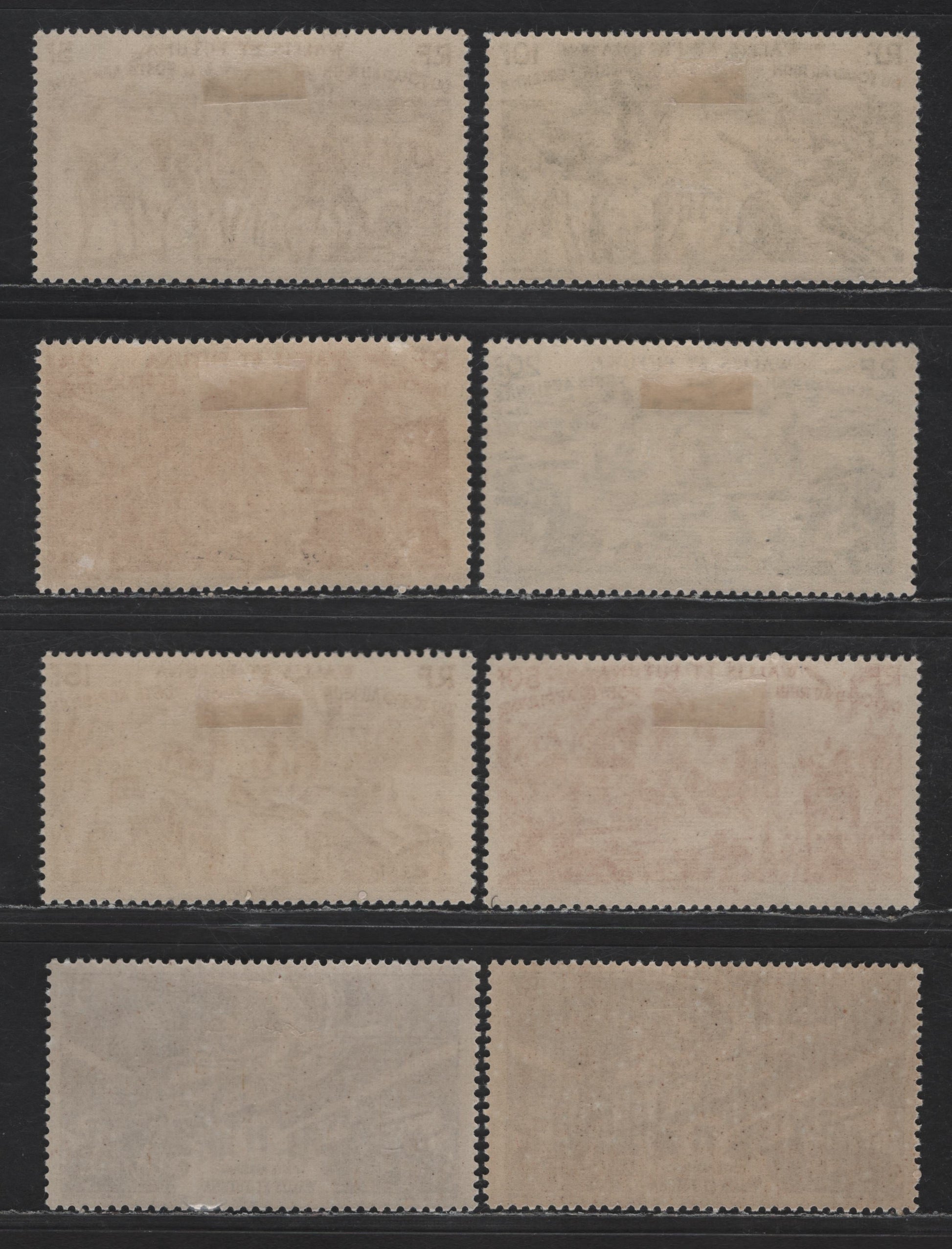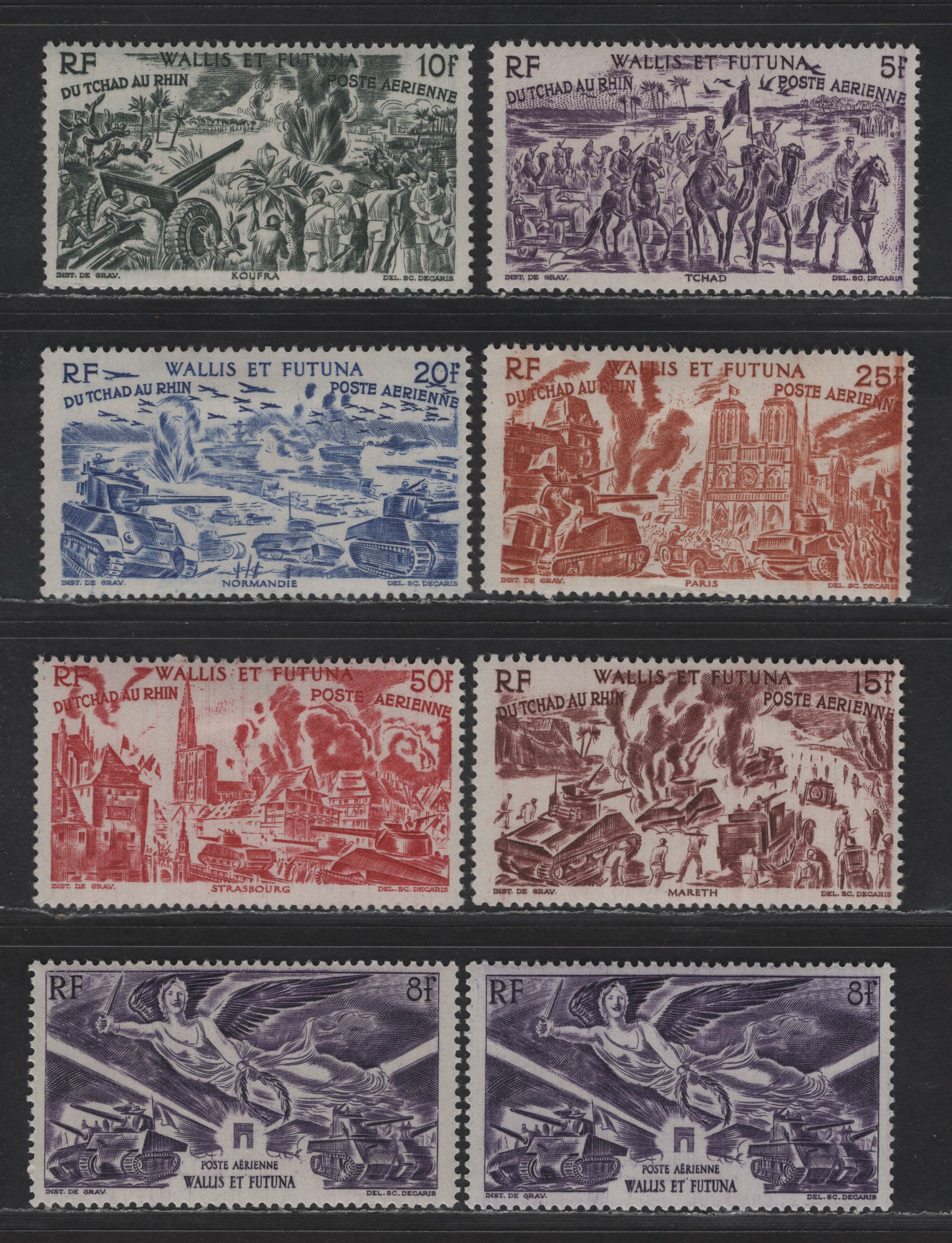 Lot 164 Wallis & Futuna Island SC#C1-C7 8fr - 50fr Violet - Carmine Victory - Chad to Rhine, 1946 Airmail Issues, 8 VFOG Singles, Two Shades Of 8fr Victory