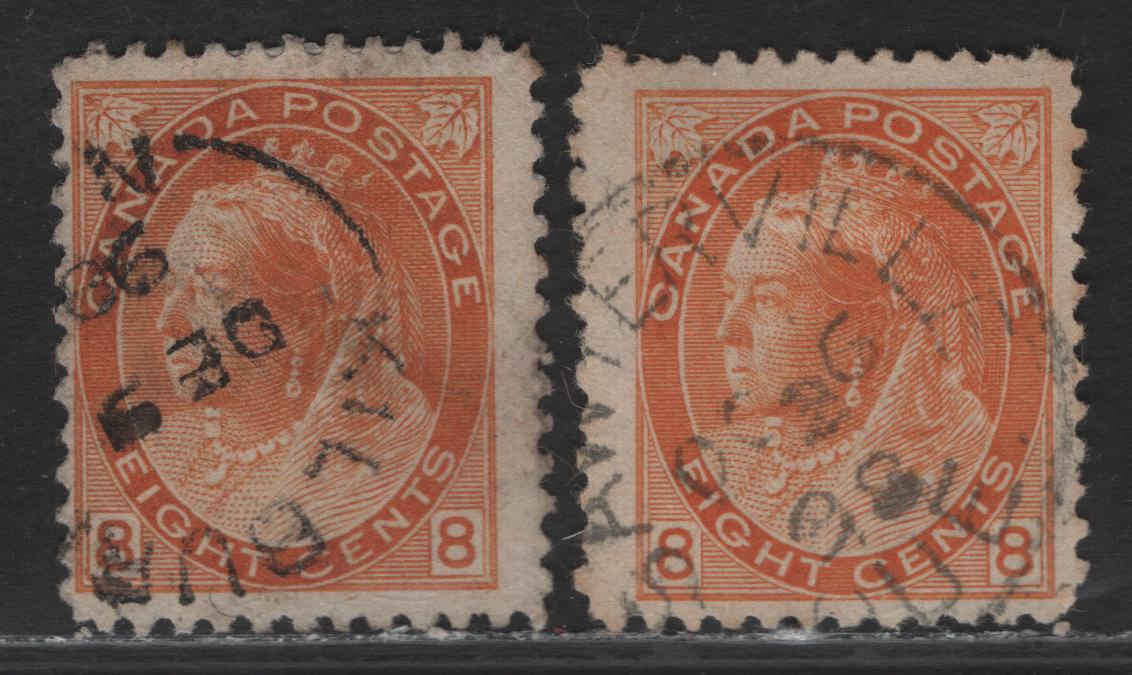 Lot 165 (C) Canada #82 8c, 1898-1902 Queen Victoria Numeral Issue, 2 Fine Used Singles Dull Orange On Paper ABN-II And Pale Dull Orange On Paper ABN-JJ. Perfs 11.9x11.8 And 12