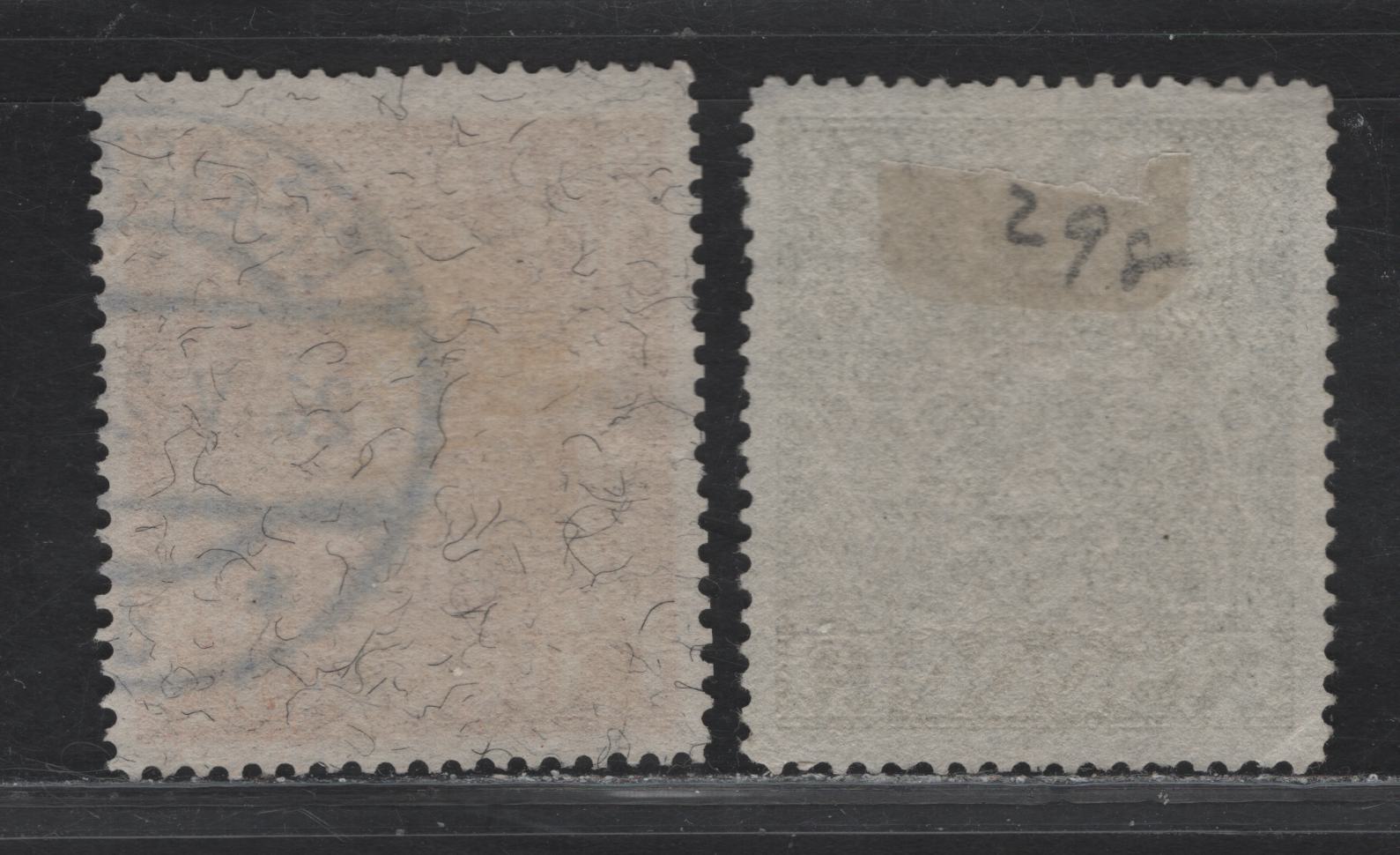 2 very fine used singles of the 5000k - 10,000k deep gray black - red brown Symbols from the 1922-1924 Symbols of Art & Science Issue, wet printings, 25x29.5mm designs.