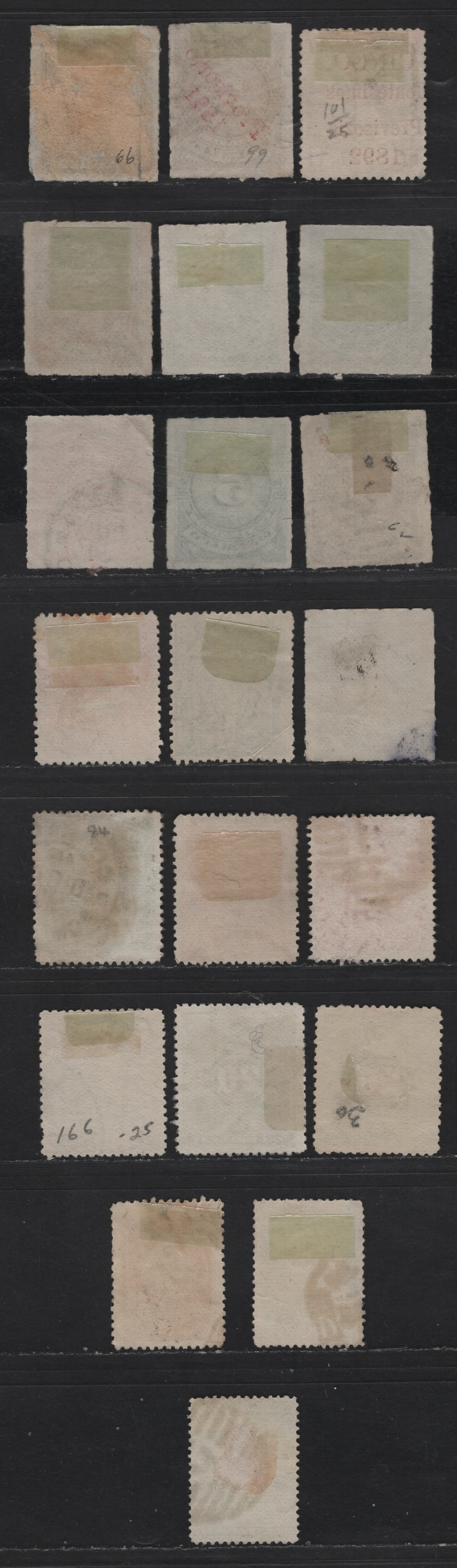 21 fine/very fine used singles of the 1c - 5c olive - blue Numerals - Portrait & Arms from the 1884-1892 Rouletted Numeral, Portraits - Arms Issues.