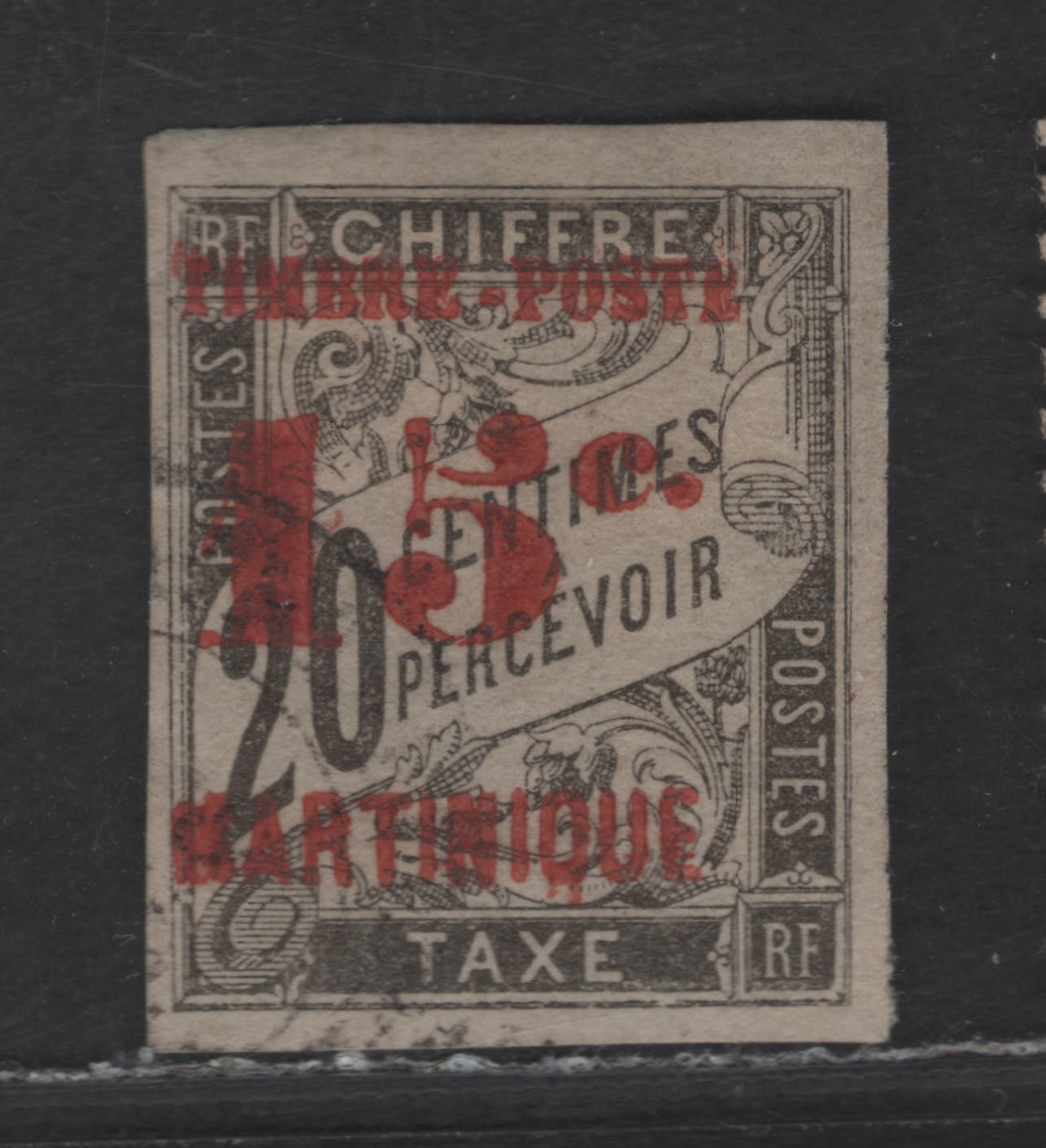 Lot 172 Martinique SC#28 15c on 20c Black Numeral & Banner, 1891-1892 Surcharged French Colonies Issue, A Very Fine Used Imperf Singles, Red Surcharge