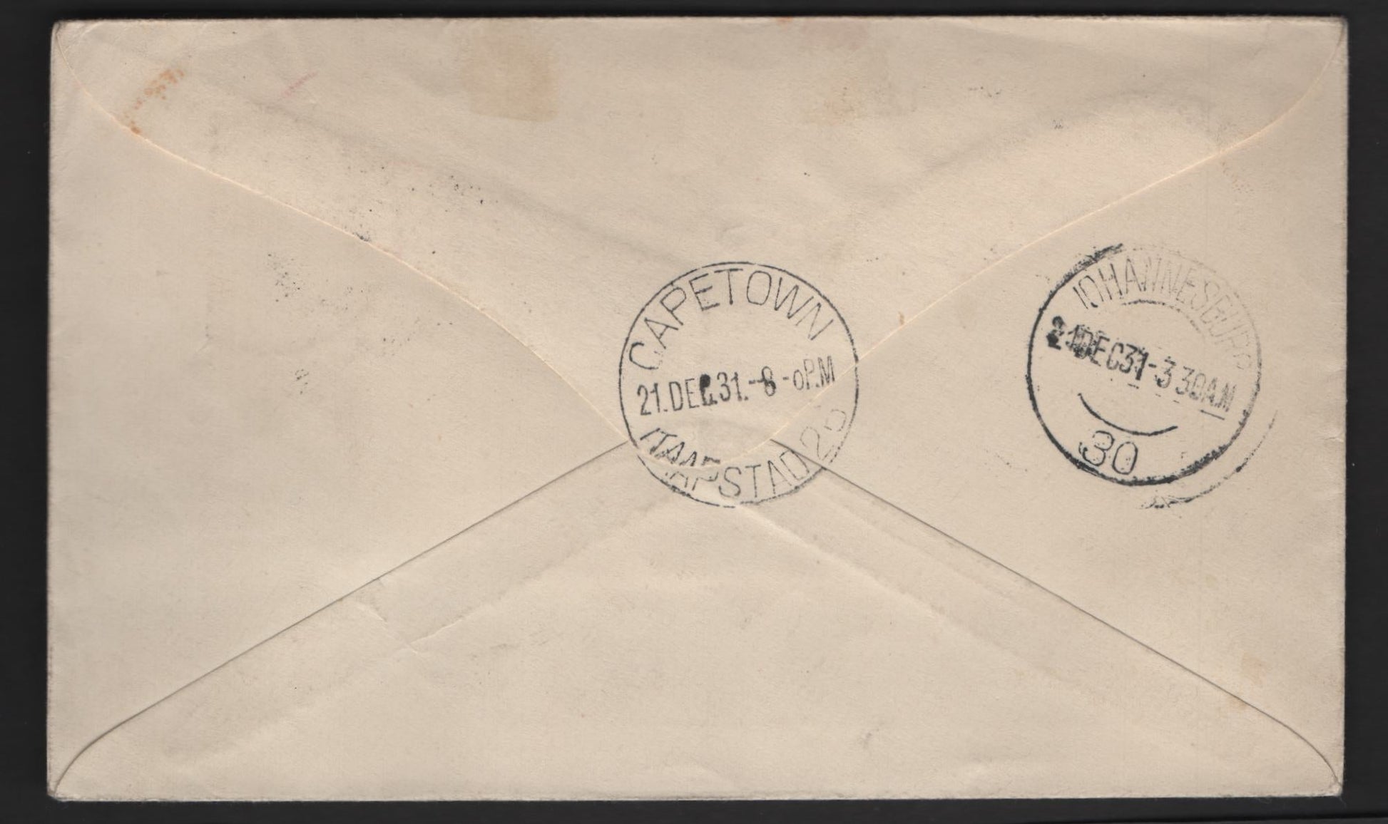 A very fine used cover of the 1d - 4d scarlet - black & orange vermillion King George V from the 1931-1937 KGV Portrait Issue, perf 11.5 printings, experimental flight cover from bulawayo to capetown.