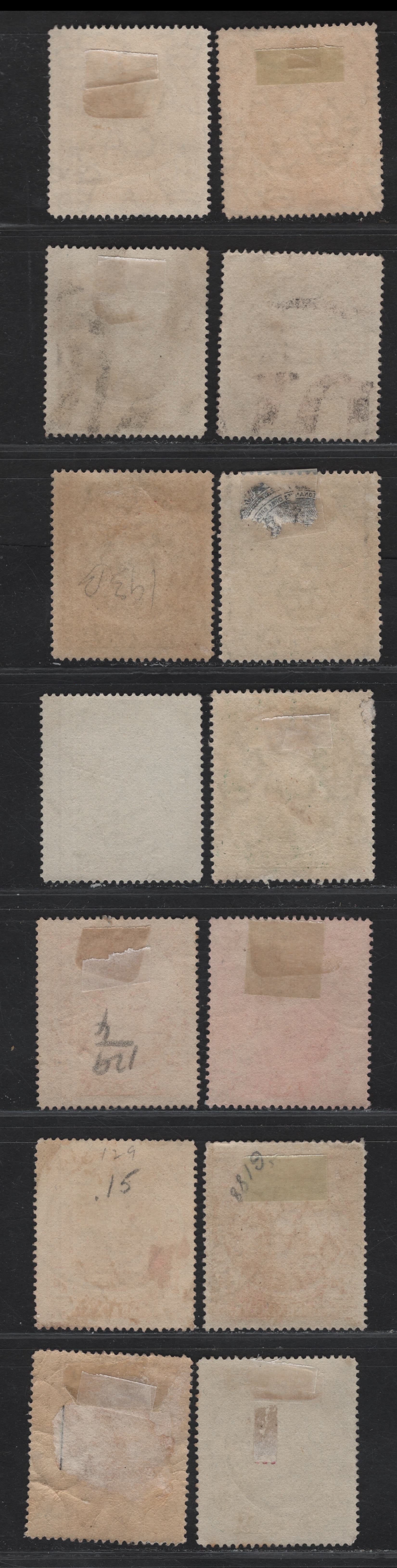 Lot 18 Barbados #181-181b, 182-182b, 183-183a, 184, 185 1/4d Deep Brown/2 1/2d Deep Ultramarine, 1916-1919 King George V Large Colonial Badge Definitives Issue, 14 F & VF OG SIngles The 1/2d Green Includes Both Comb & Line Perfs