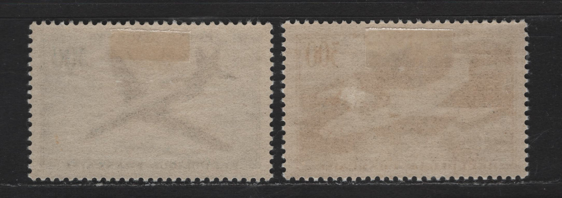 Lot 200 France SC#C34-C35 300fr - 500fr Multicolored Caravelle, 1957-1959 Airmail Issue, 2 VFOG Singles, Low Fluorescent Paper