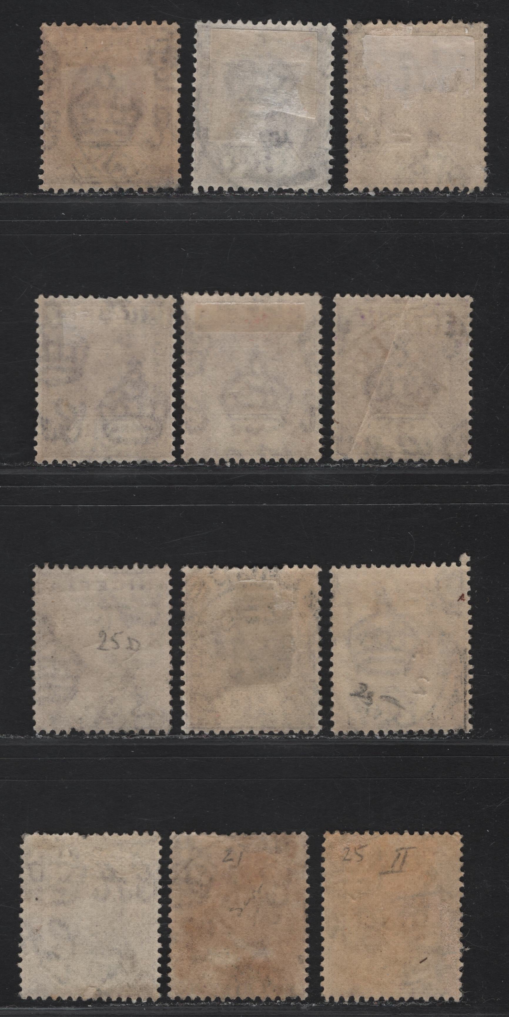 12 fine/very fine used singles of the 3d purple & purple violet King George V from the 1921-1932 KGV Imperium Keyplate Issue, Wmk Multiple Script CA, dies 1 & 2, dated exampes with a range of dates from 1924-1929.