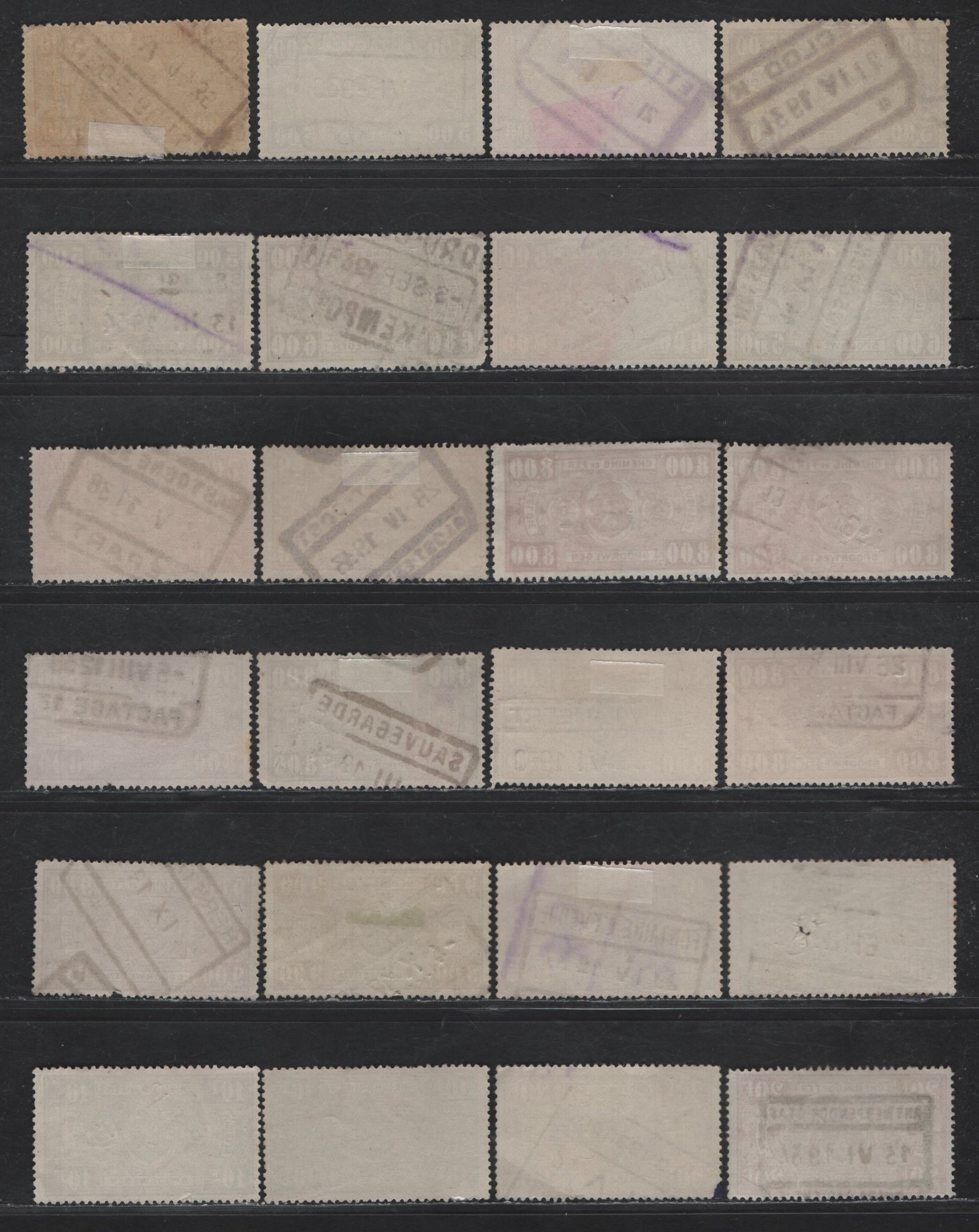 Lot 205 Belgium #Q140, Q142, Q145, Q146, Q147-Q152, Q156, Q160-Q163, Q164-Q168 10c Vermilion - 20f Magenta, 1923-1940 Parcel Post Issue, 50 F & VF Used Singles With Shades