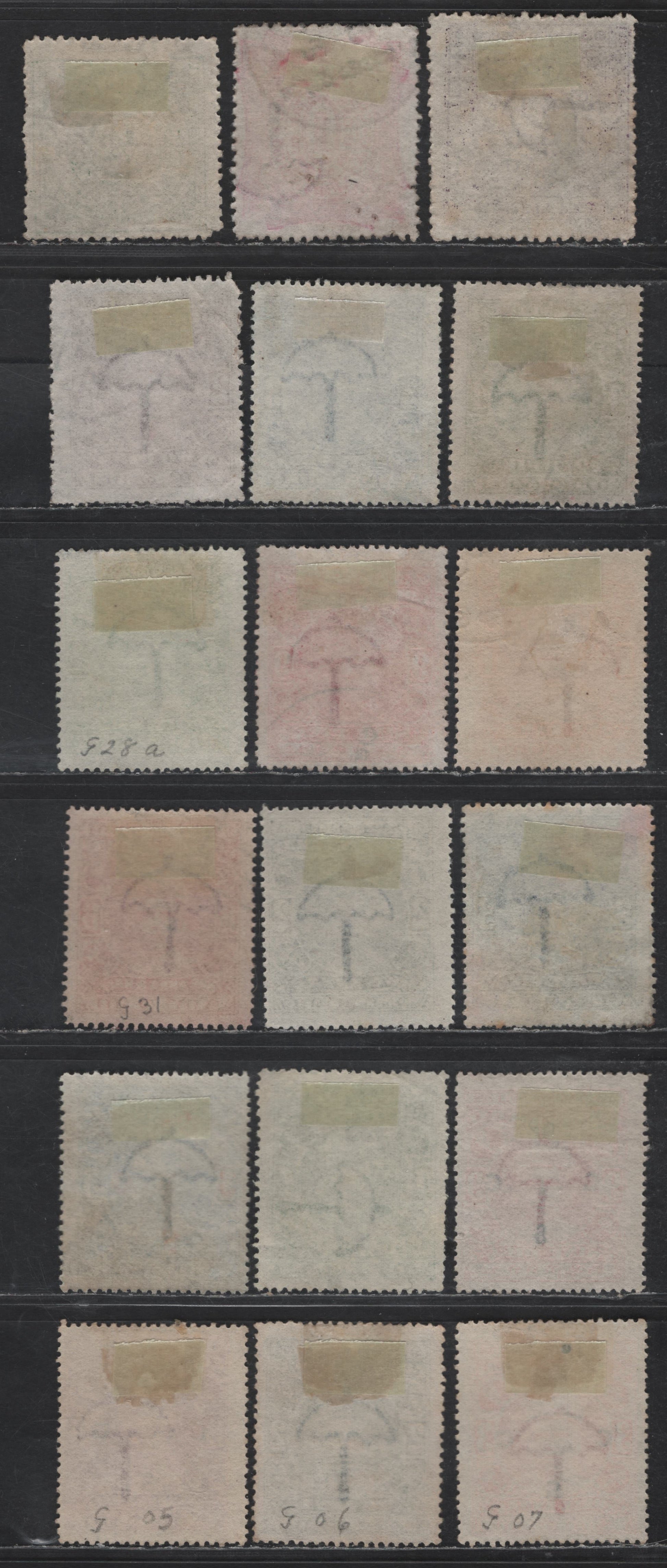 18 fine/very fine used singles of the 1/2p - 9p green - red Numerals - Portraits from the 1902-1913 Numeral -Raja Rama Varma I Issues.