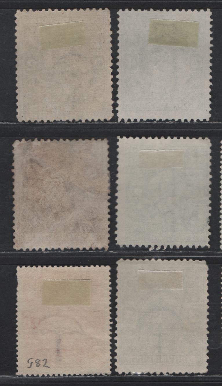 6 fine/very fine used singles of the 2p - 3p on 4p brown - gray green Maharaja Rama Varma III from the 1938-1944 Lithographed Maharaja Rama Varma III - Surcharged Engraved Issues.