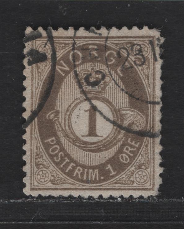 Lot 213 Norway SC#22 1o Drab Posthorn, 1877-1878 Sans-Serif 'Norge' & Shaded Posthorn Issue, A Very Fine Used Single