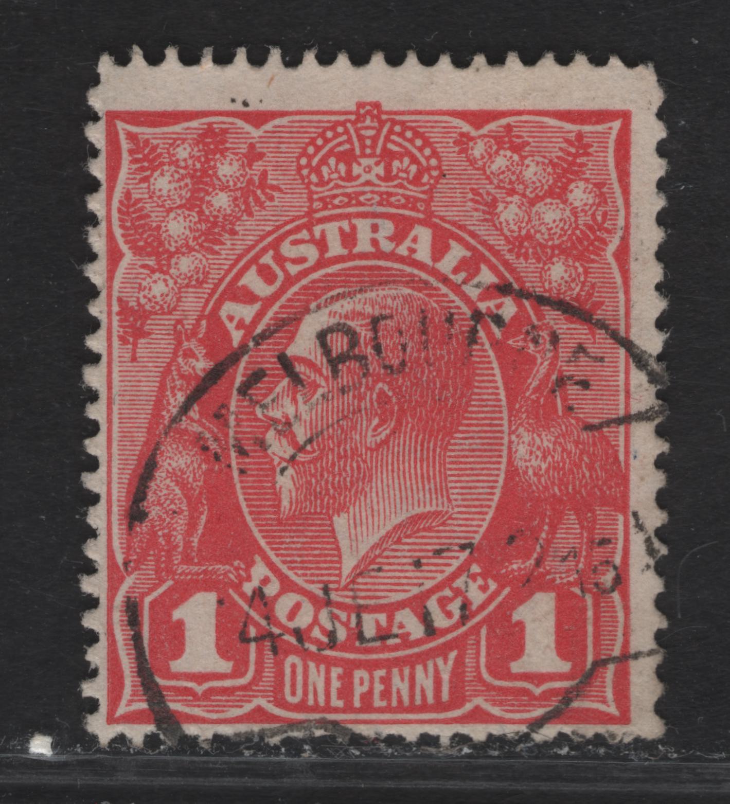 Lot 213 Australia SG#21aw 1d Rose Red King George V, 1914-1920 KGV Heads Issue, A Fine Used Single, Perf 14.25x14, Inverted Wmk
