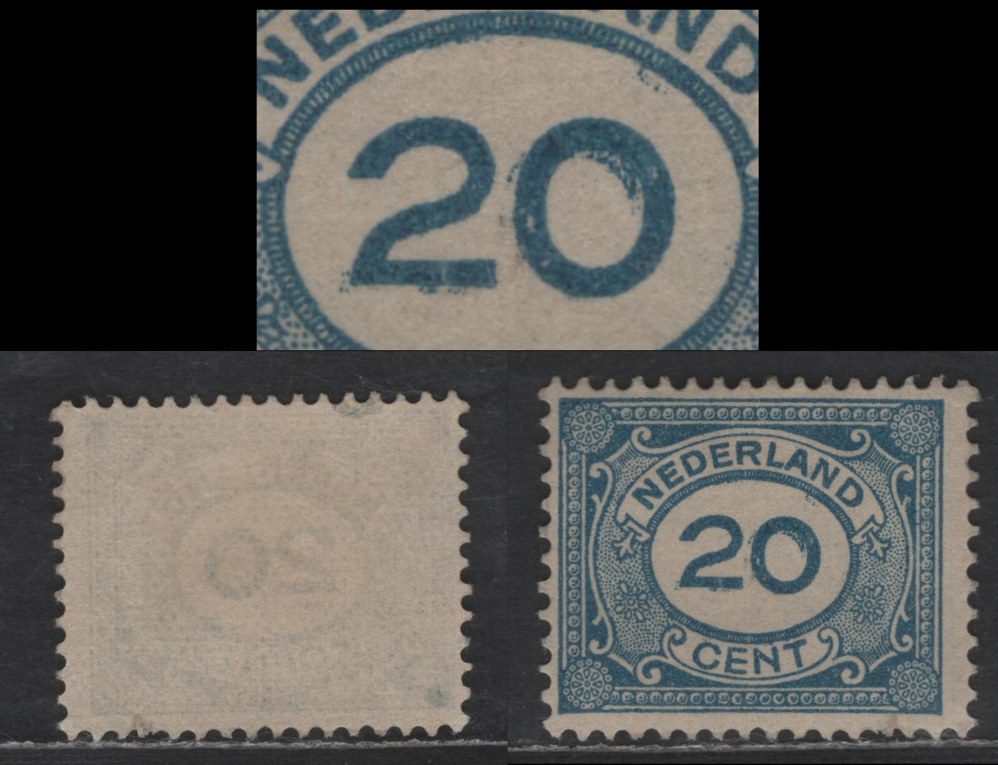 Lot 222 Netherlands SC#109var 20c Blue Numeral, 1921-1922 Surcharge Issue, A Fine Unused Single, Partial Doubling Of '20'