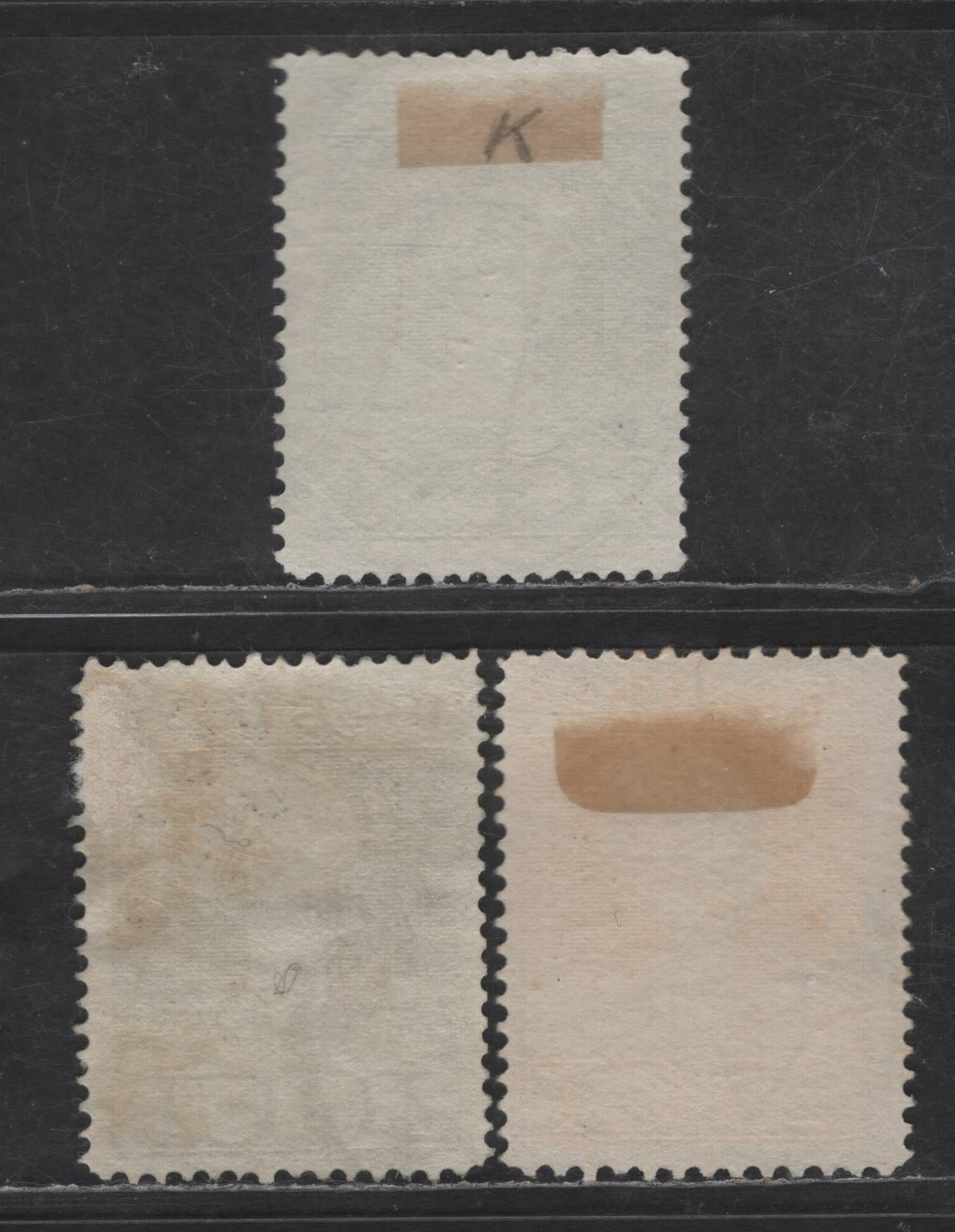 Lot 224 Netherlands SC#129var, 124var, 128var (NVPH 12b1, 121k, 125L) 2c - 25c Green - Yellow Queen Wilhelmina, 1923 25th Anniv of Queen Wilhelmina's Ascension, 3 Fine Used Singles, Better Perfs Listed Only In NVPH