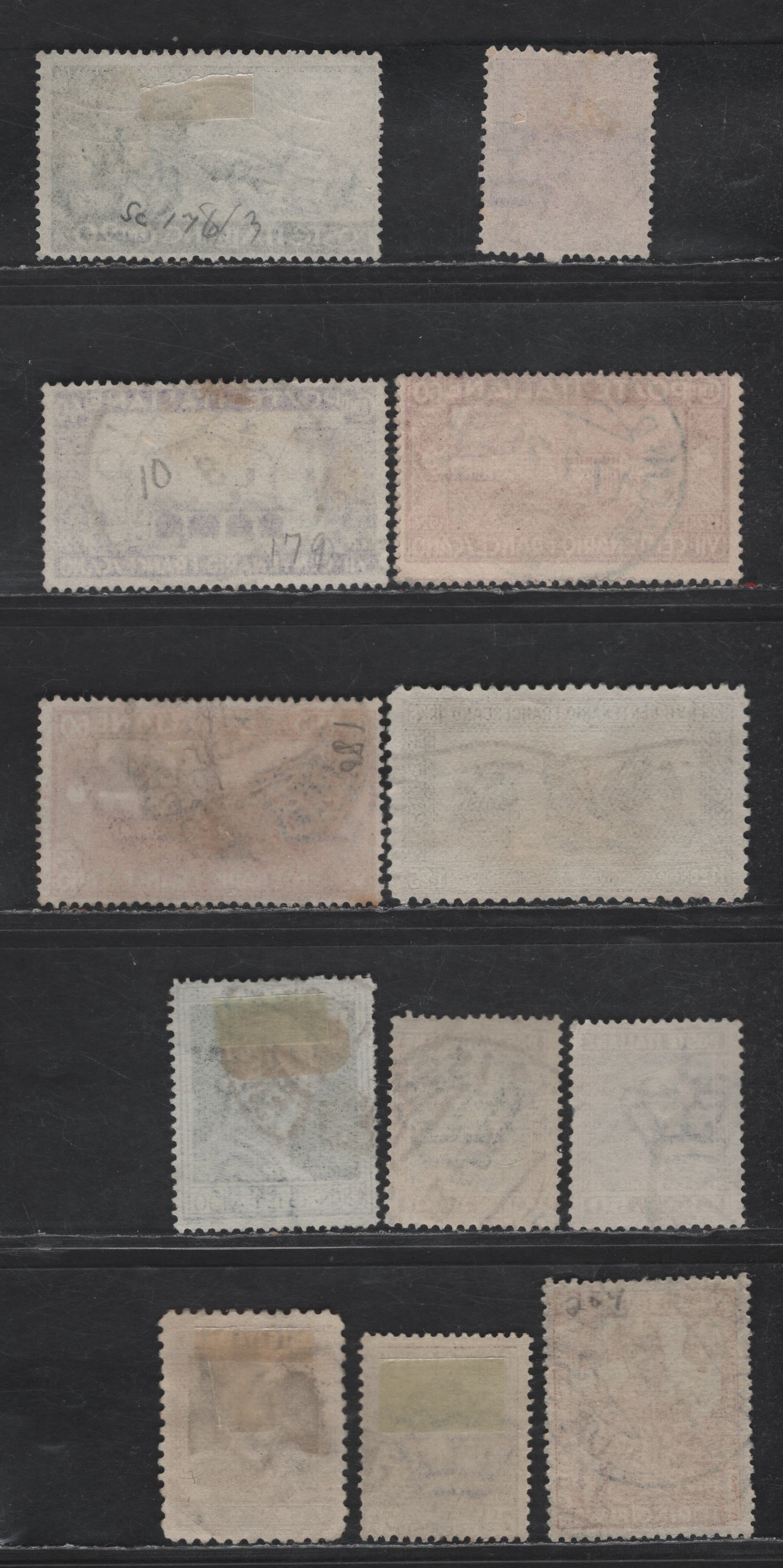 Scott values these at $18.8, so we estimate them at $10. The stamps offered here grade between 60 and 76 as follows: