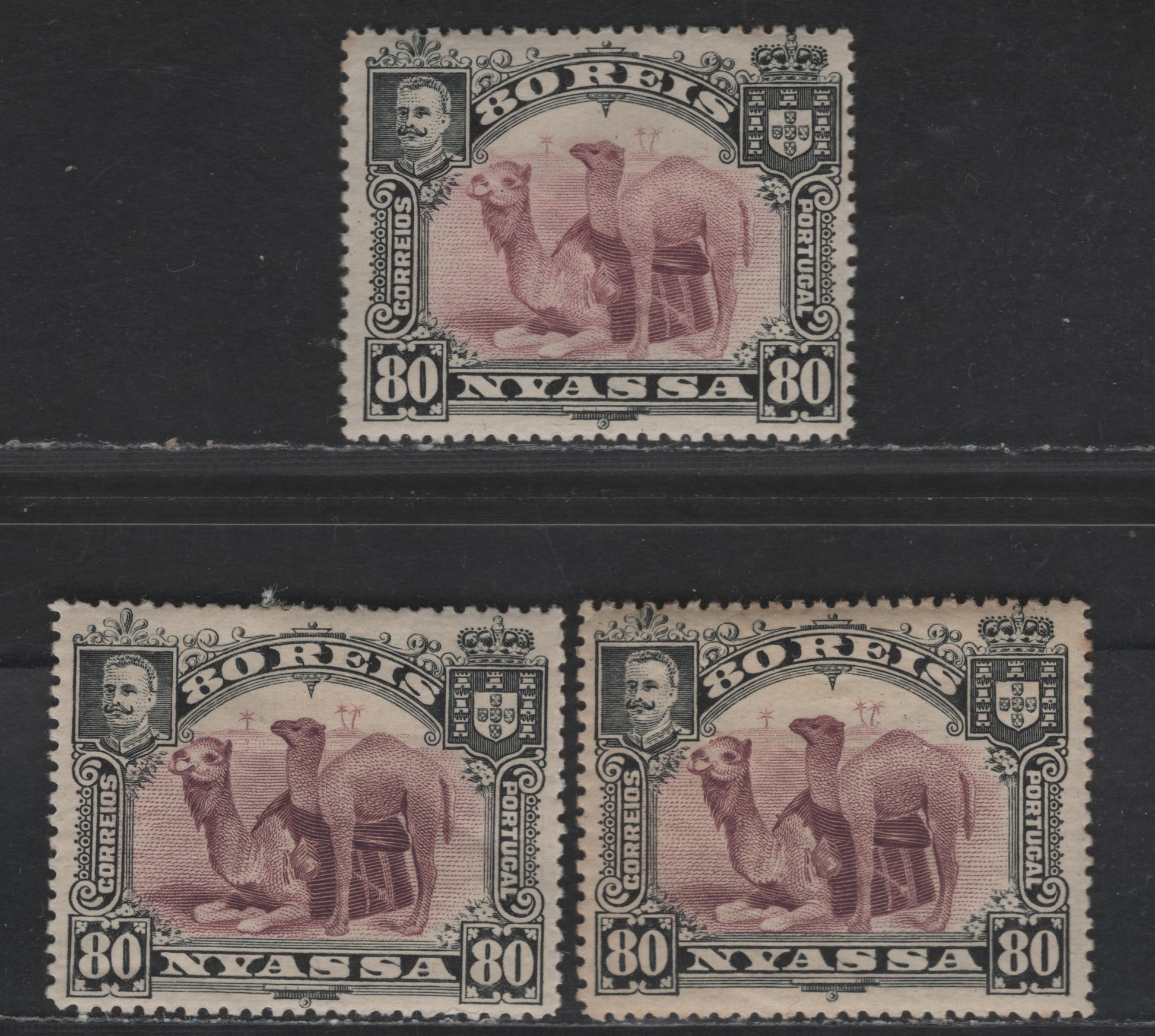 Lot 228 Nyassa SC#34 80r Black & Lilac Camel, 1901 Pictorial Issue, 3 VFOG Singles, Perfs 14 & 14.25, Two Shades Of Perf 14