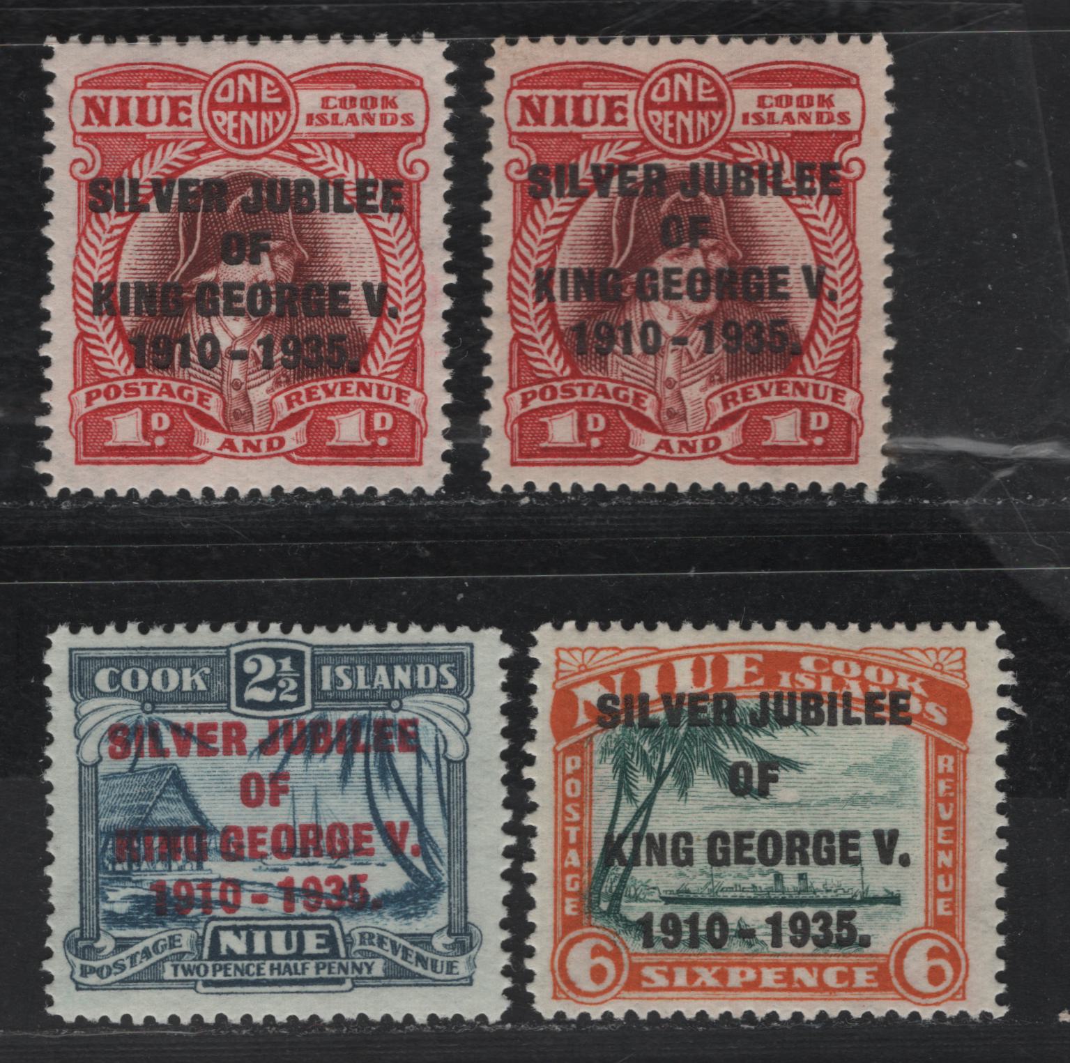 Lot 234 Niue SC#67-69 1d - 6d Carmine & Brown Red - Dull Orange & Green Captain Cook - Ship, 1935 Silver Jubilee Issue, 4 VFOG Singles, Two Shades Of 1d