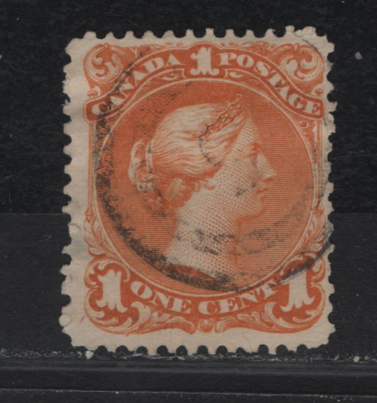 Lot 239 (C) Canada SC#23 1c Yellow Orange Queen Victoria, 1868-1897 Large Queen Issue, A VG Used Single On Paper FO-O (Duckworth Paper 10), Small Thin On Back, #5 Hamilton 2-Ring Cancel