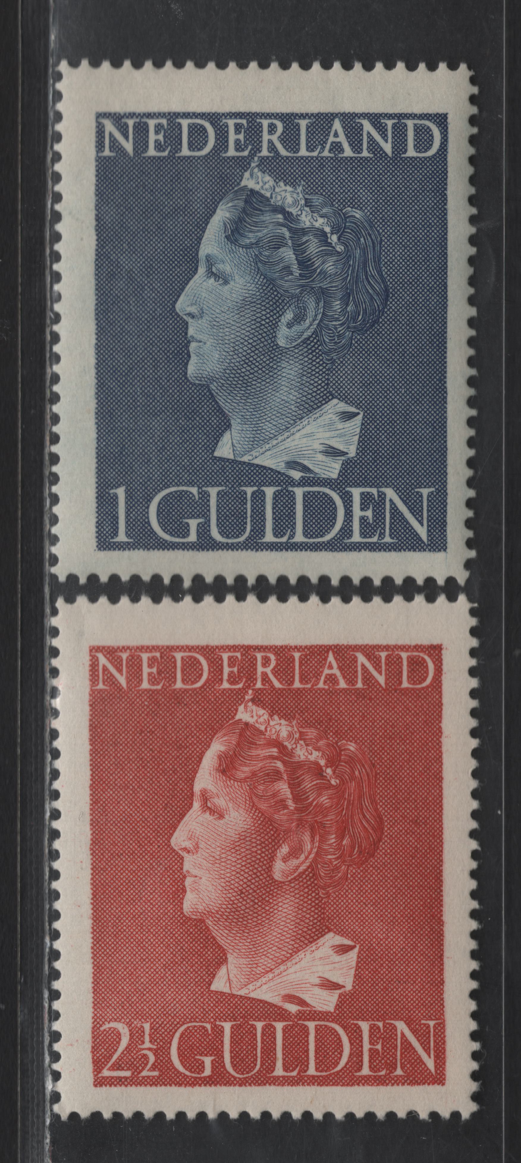 Lot 249 Netherlands SC#278-279 1g - 2.5g Dark Blue - Brick Red Queen Wilhelmina, 1946 Queen Wilhelmina Issue, 2 F/VFOG Singles