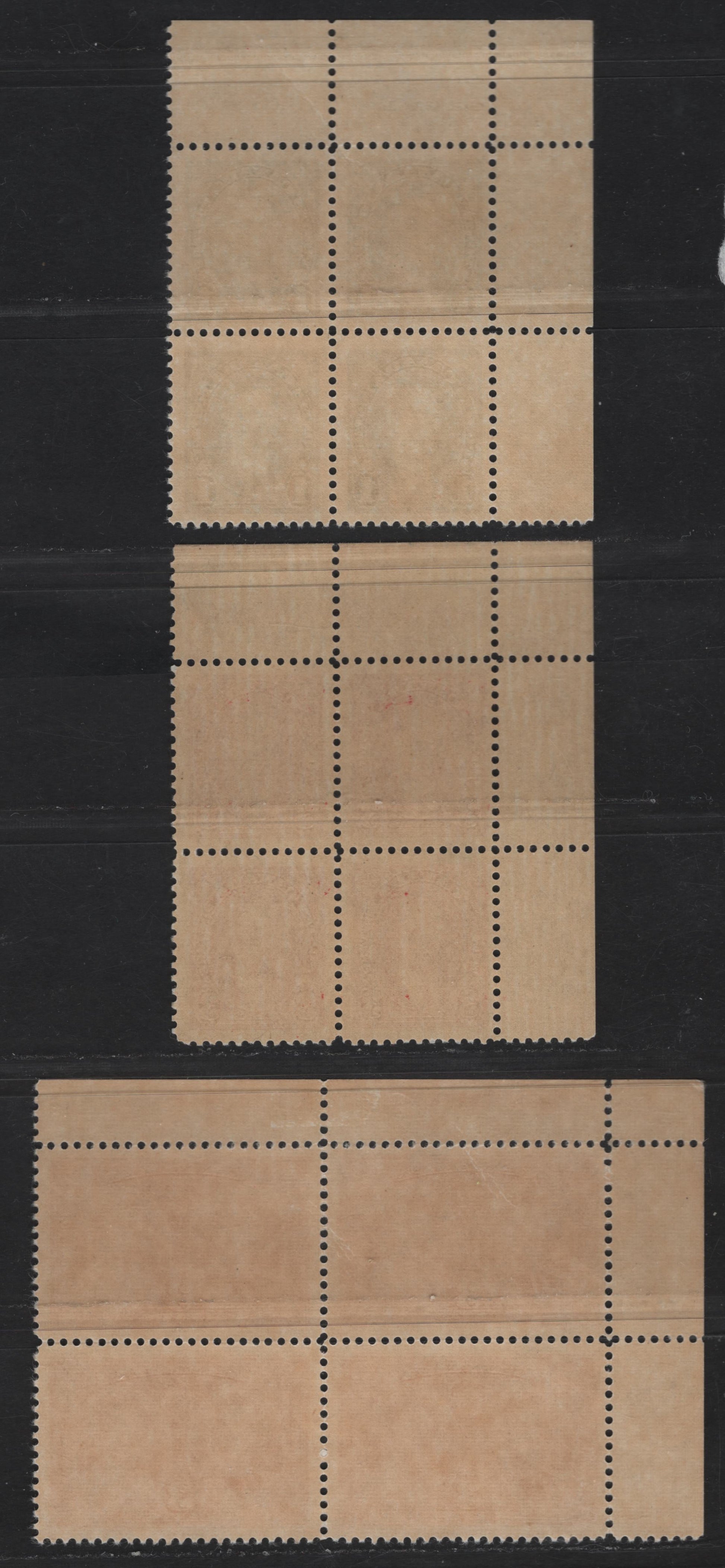 Lot 252 Canada #231, 233, 237 1c Green, 3c Carmine, 3c Carmine, 1937 King George VI Mufti / Coronation Issues, 3 VF NH/LH Plate Blocks Plates 1,3 & 10 Blocks Different Papers & Gums