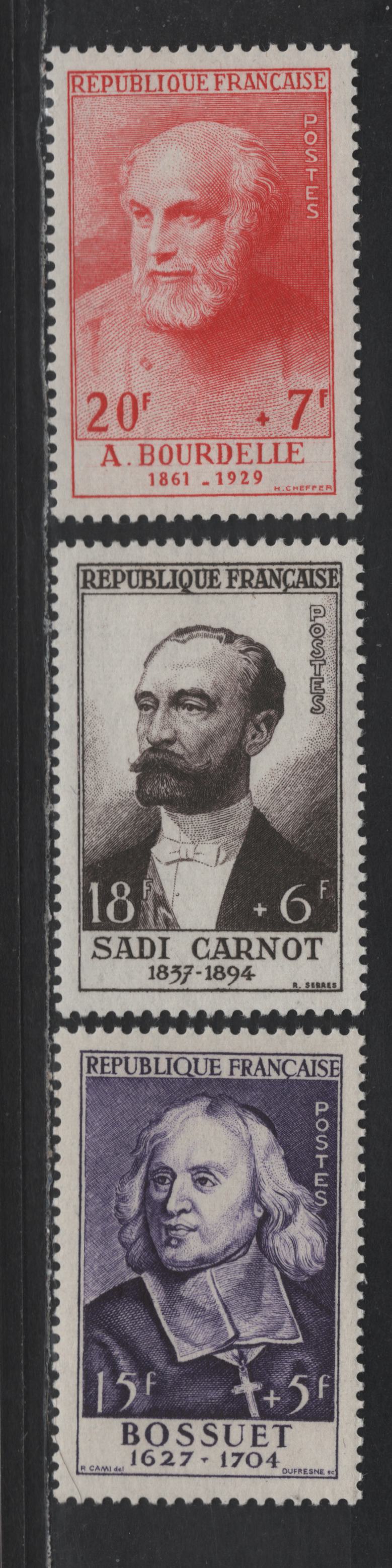 Lot 253 France SC#B286-B288 15fr+5fr - 25fr+8fr Purple - Indigo Louis IX, 1954 King Louis IX Issue, 3 VFOG Singles