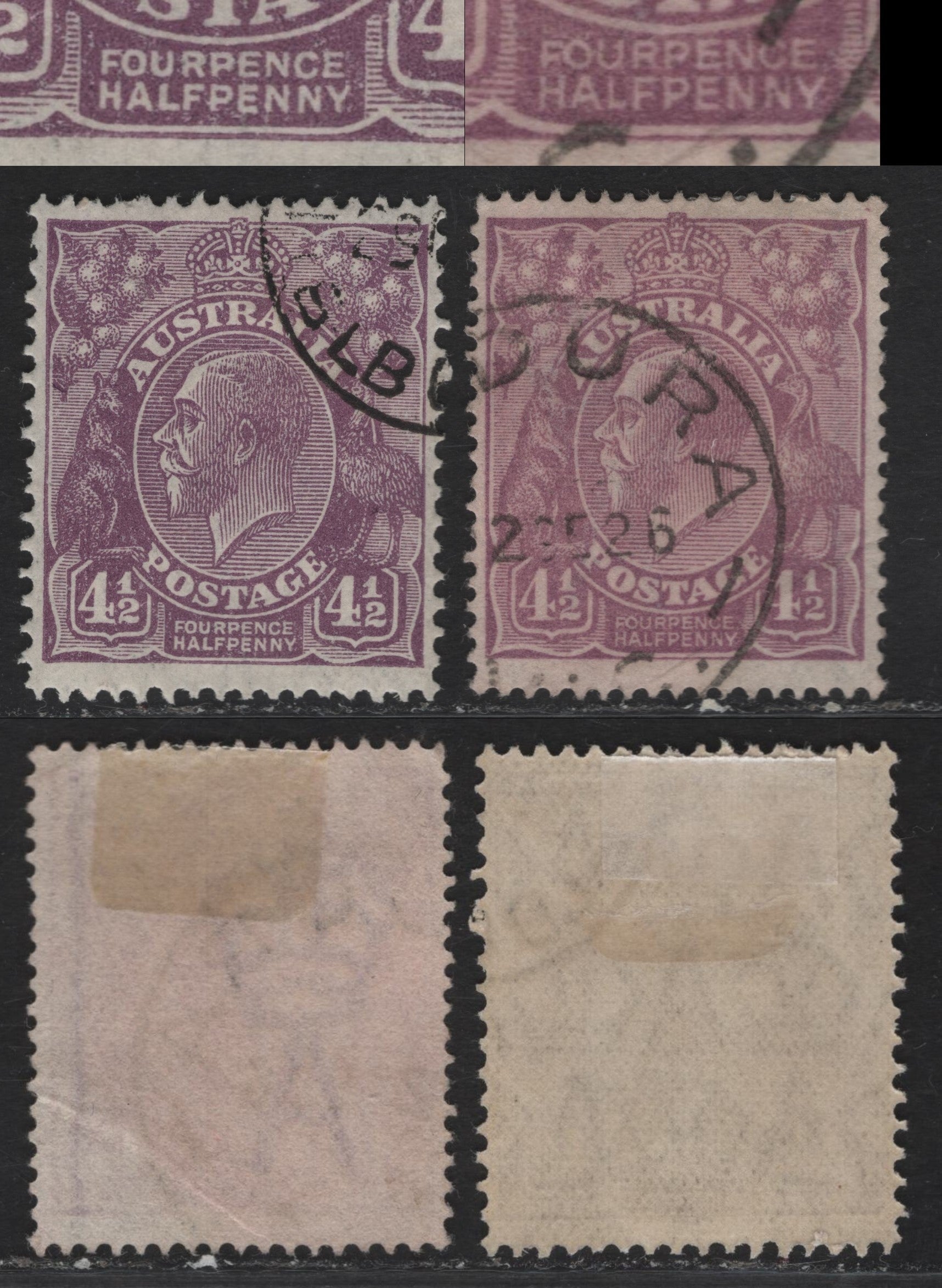 Lot 253 (C) Australia SG#120a 4.5d Violet King George V, 1930 Surcharged KGV Heads Issue, 2 VFOG Singles, Redrawn Die With Thicker FourPence Lettering & No Surcharge, CTO with Full Gum From Post Office Sets, As Noted In Gibbons