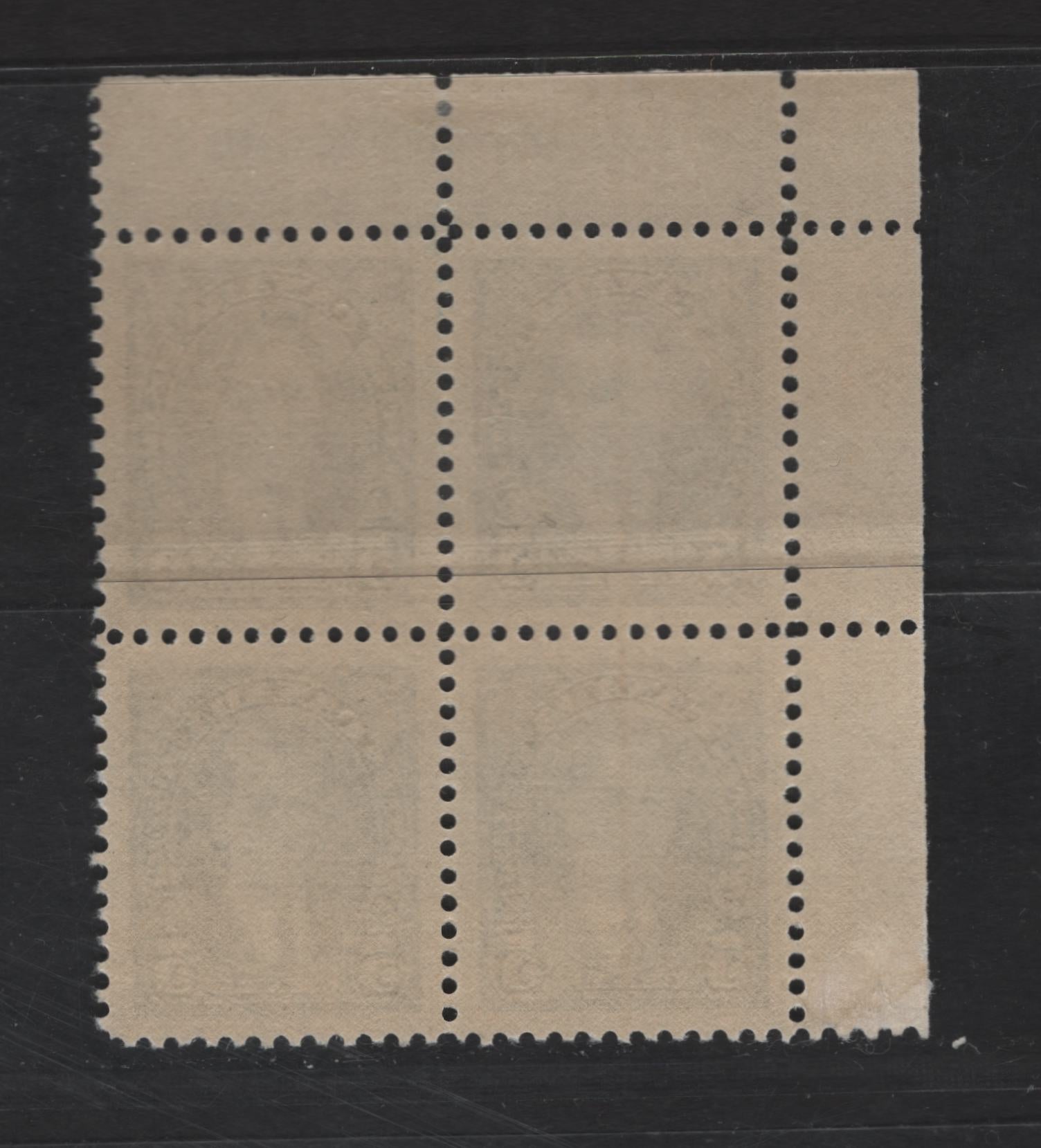A VFNH UL plate 2 block of 4 of the 5c blue King George VI from the 1937 Mufti Issue, perf 12, hinge in selvedge.