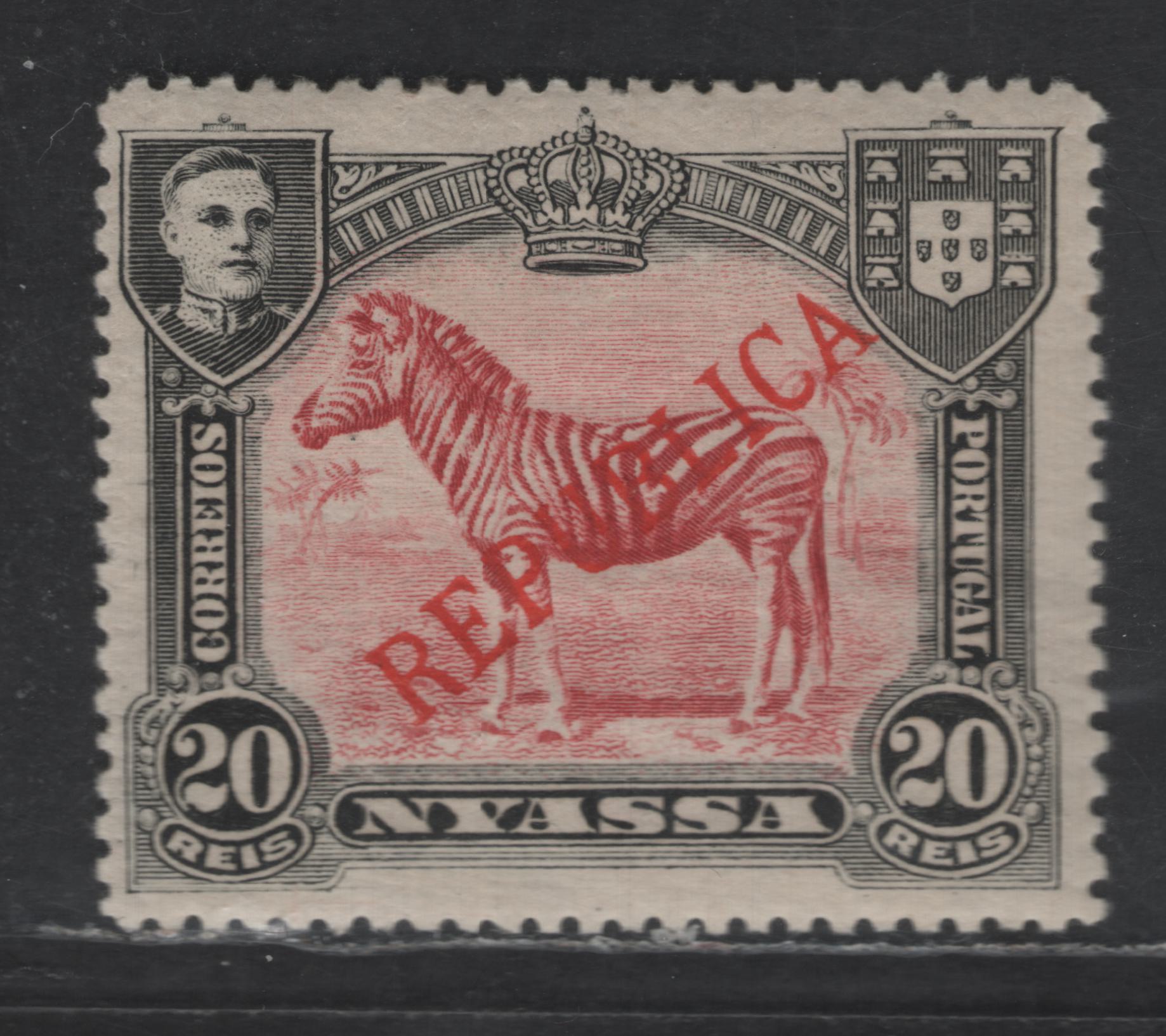 Lot 256 Nyassa SC#54var 20r Black & Carmine Lake Zebra, 1911 Republica Overprinted Issue, A VFOG Single, Full Overprint Offset on Gum, Perf 14.25