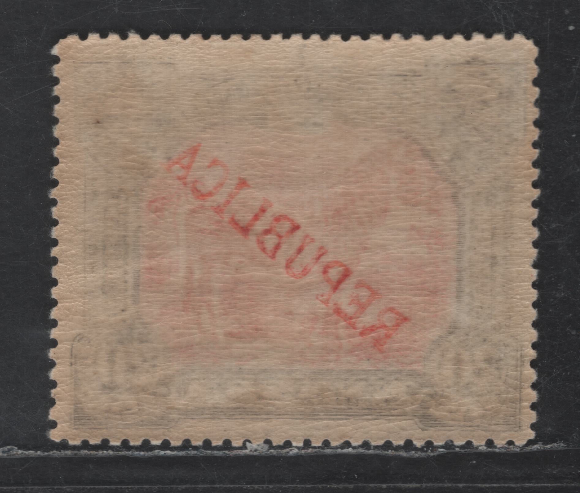 A VFOG single of the 20r black & carmine lake Zebra from the 1911 Republica Overprinted Issue, full overprint offset on gum, perf 14.25.