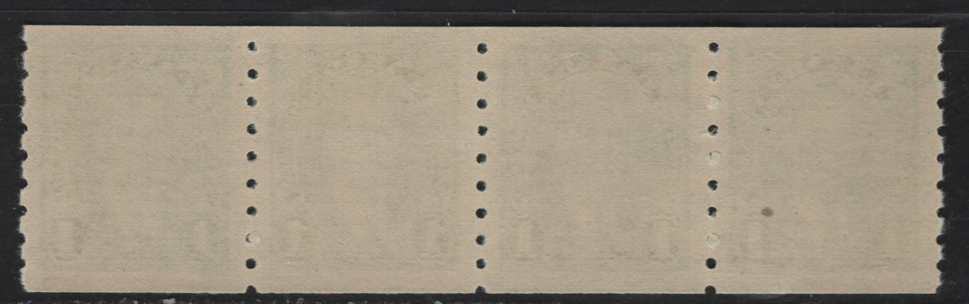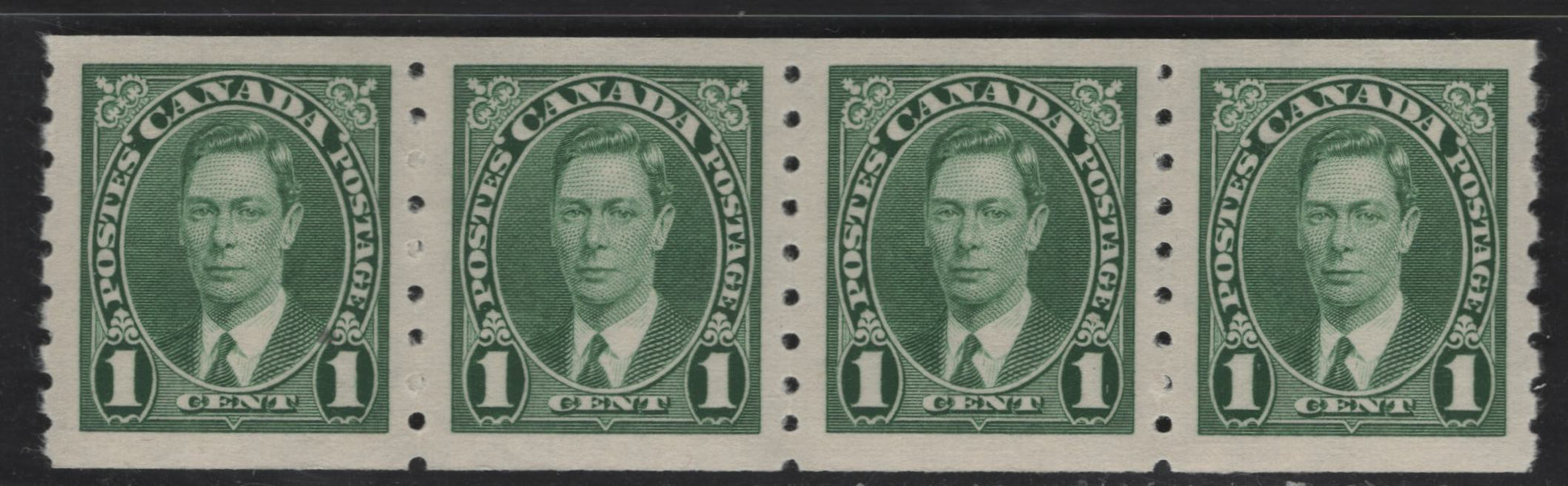 Lot 256 Canada #238 1c Green King George VI, 1937 Mufti Coil Issue, A VFNH Coil Strip Of 4, Perf 8 Vertical