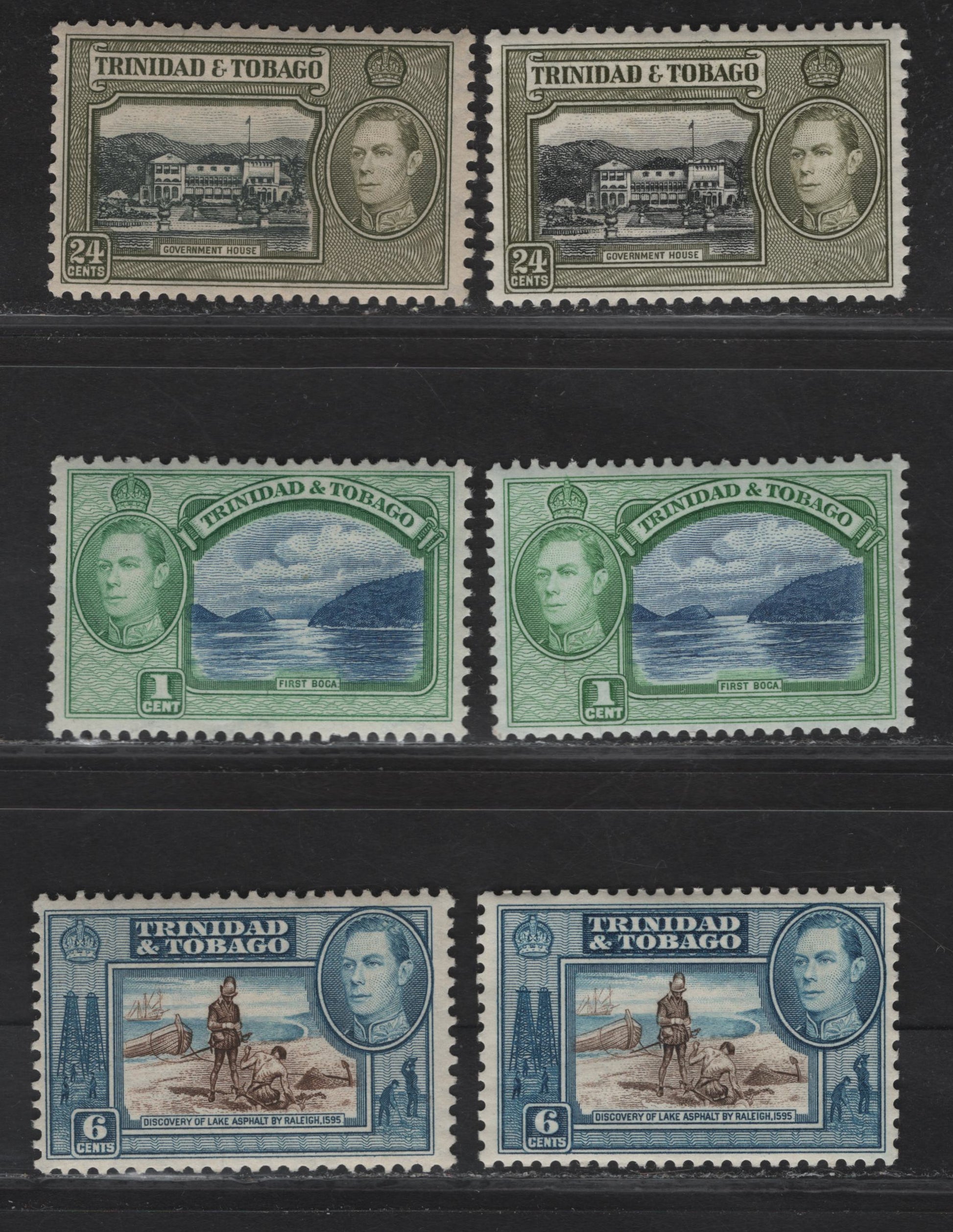 Lot 257 Trinidad & Tobago SG#246, 250, 253 1c - 24c Blue & Green - Black & Olive Green First Boca - Govt House, 1938-1944 KGVI Pictorial Issue, 3 F/VFNH Singles, 1938 & 1942/1944 Printings