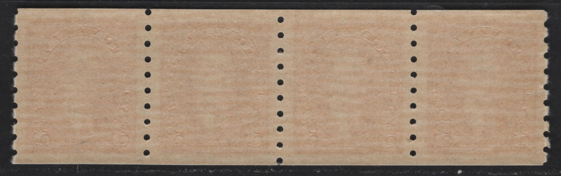 Lot 258 Canada #240 3c Carmine King George VI, 1937 Mufti Coil Issue, A VFNH Coil Strip Of 4, Perf 8 Vertical